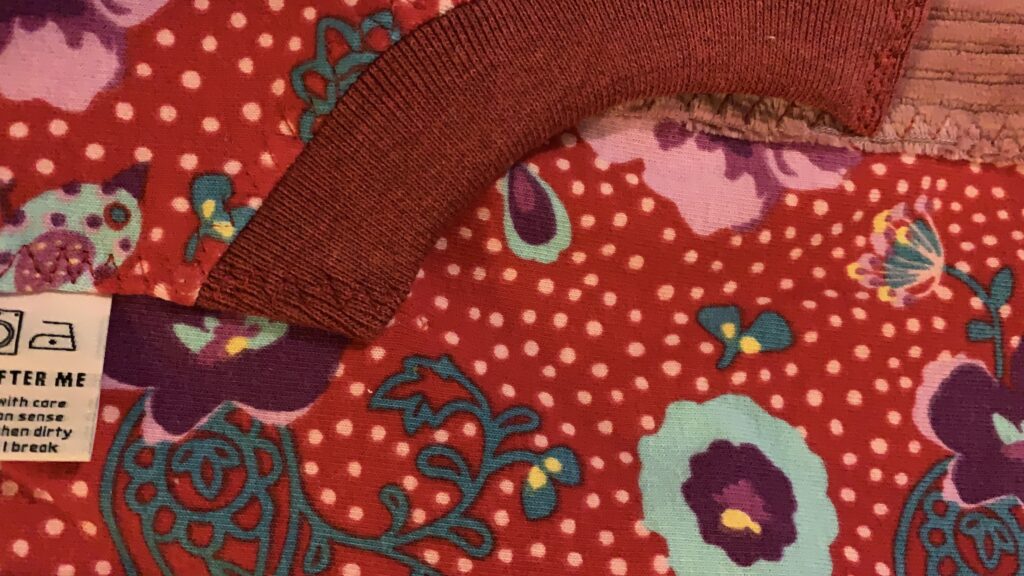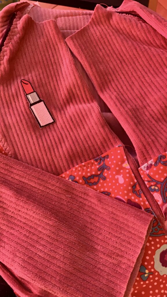 Ein weiteres Restenverwertungsstück ist am Entstehen. Eine Jacke für Alaya… eine Seite Flower-Power-Retro-Rosa, die andere eher Variante Grün-Bio-voll-vegan…