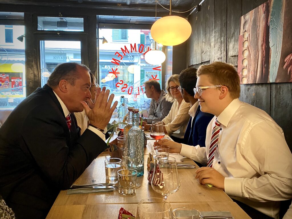Wir haben heute bei äusserst misslichen Wetter Erics Konfirmation gefeiert. Triefend nass, bis wir in der Kirche waren, danach war das Wetter zwar nicht besser, aber wir hatte es schon lustiger… und bis wir im Frisk Fisk waren (vermutlich das nächstgelegene Lokal zur Kirche) war die Stimmung perfekt und alle konnten da still vor sich hintrocknen. Eric sah in seinem schicken Gwändli samt Krawatte (Youtube: Kravatte binden einfach für Anfänger…) übrigens aus, wie ein frischgebackener Konfirmand. Also perfekt 🙂