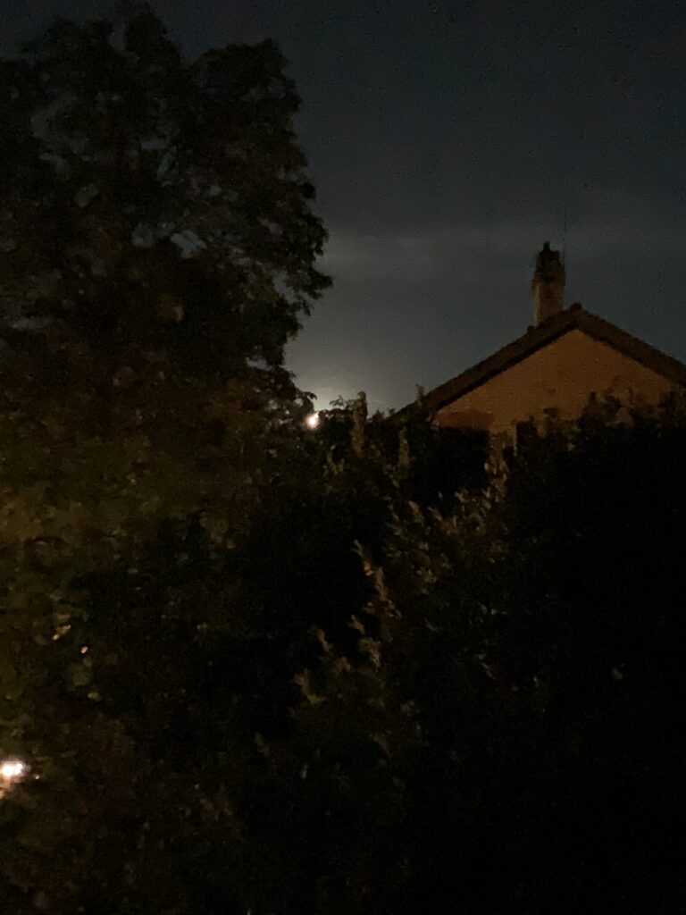 Vollmond war auch noch diese Woche – grad geht er strahlend hell auf hinter Nachbars Haus und leuchtet(e) stramm direkt in mein Bett.