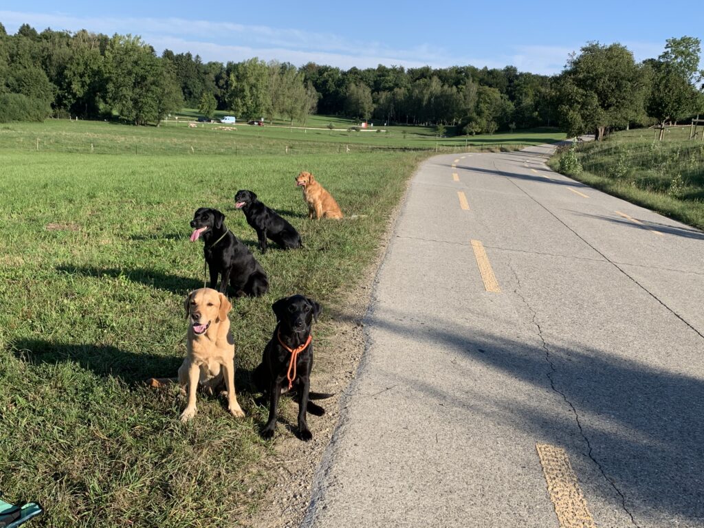 …oder sei es das «andere» Licht am frühen Samstagmorgen nach dem ersten Training. Zu heiss, um im Auto zu warten für Jodie, so durfte sie bei den Grossen mitgucken. Der Wald kippt bereits ins gelbe, die Wiesen sind überall kursgeschnitten, die Felder oft schon abgeräumt und auch der Himmel ist eben einfach «anders» blau.