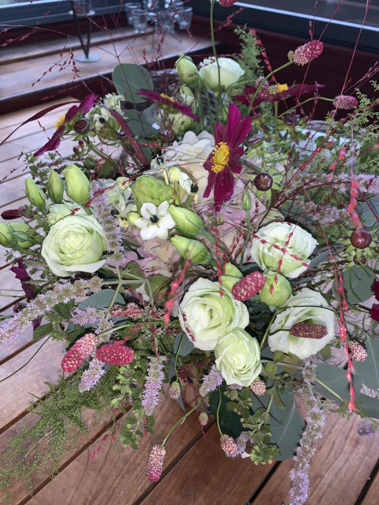 Aber nicht nur die Kürbissuppe zeigt den Herbst an. Die Felder sind farbenfroh… sei es ein wunderschöner Blumenstrauss von Irene und Andreas (Dankeschön! es war ein schöner Abend) oder die blau-violetten Kabisfelder….