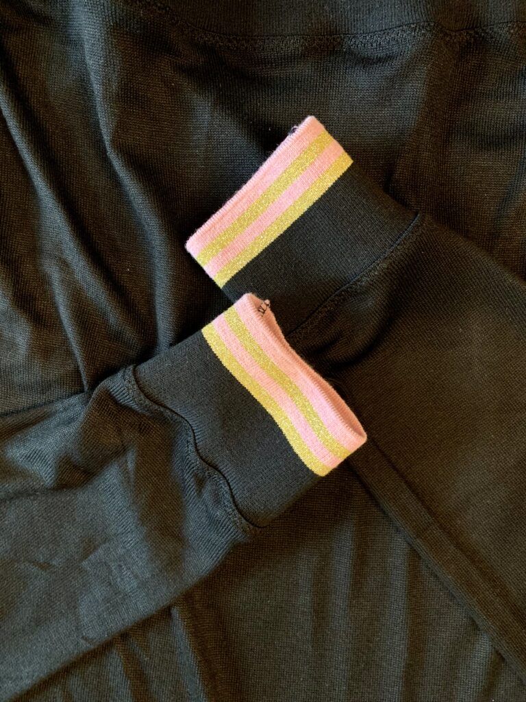 Schnitt: Senora Nuba von Followme-Design.ch, Material ist der «Self-stripe Ottoman Knit» von MeetMILK aus Dänemark. Grandios weich, warm, aber Achtung, ich habe beinahe alle Nähte mit Nahtband vor dem ausleiern geschützt. Farbe ist schwarz und überhaupt nicht blau-schwarz, wie es auf dem Foto daher kommt.