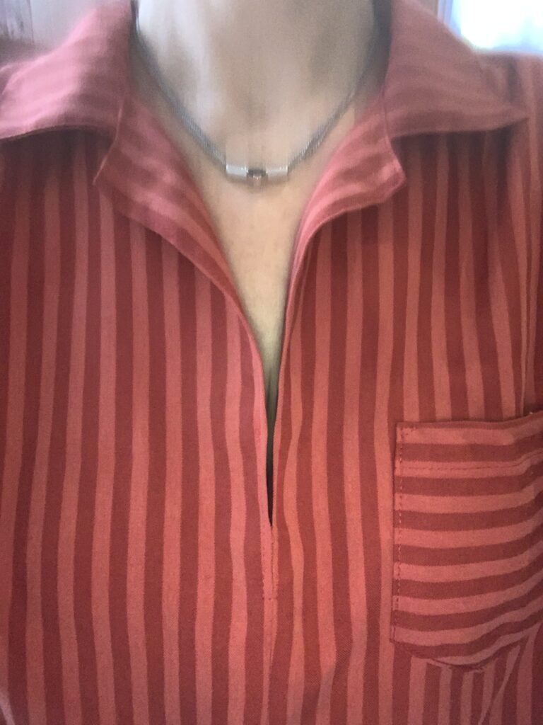 Der Stoff macht was her, sehr angenehm zu tragen, der Ausschnitt für meine Begriffe etwas tief – habe 3cm zugenäht.