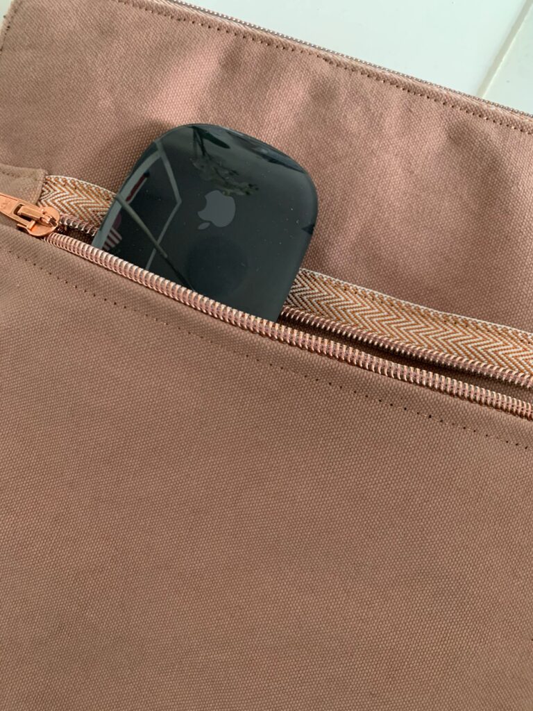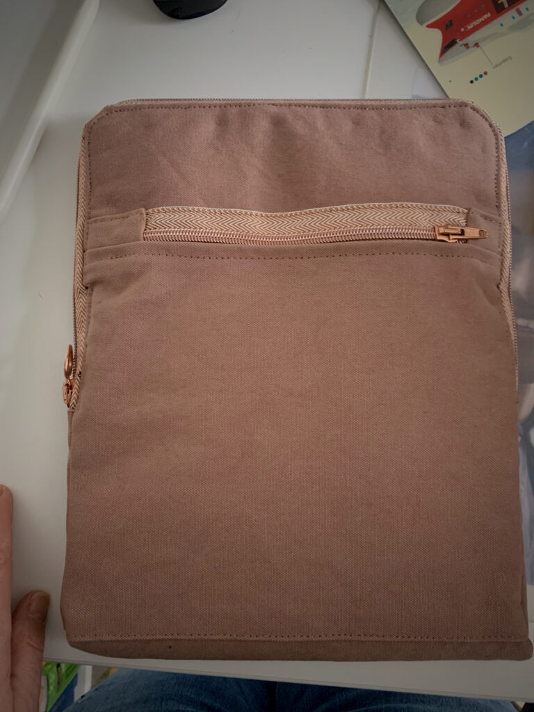 In Heavy Canvas in altrosa für AnnA, in Softshell für mich. Alles Material (inklusive dem wunderschönen kupferfarbenen Reissverschluss!) von www.kuntundbunt.ch – da habe ich mich auch für das Projekt inspirieren lassen. Schnitt: aus den Tiefen des Internet hier, allerdings hat es da noch das eine oder andere Häkchen… ich bin auf jeden Fall nicht ganz zufrieden – AnnAs Heavy Canvas Teil hat eine Schwachstelle am unteren Seitenende (unsauber mit dem Futter gelöst, weil einfach VIEL zu dick). Wir werden sehen, wie sich das Teil im Alltag bewährt – notfalls machen wir eine Neuauflage. Und wie man ein Teil ohne Tasche für Maus, Kabel & Co. designen kann, ist mir auch nicht ganz klar….