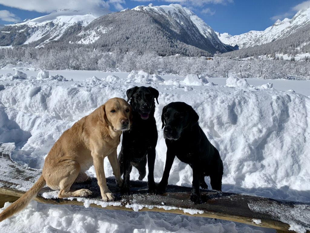 Auch in unserem Haus ist manches anders. Die einen geniessen den Schnee… wenn auch ohne Skier (weil einfach das Handling von 3 Hunden, Skiern und Co. alleine etwas anstrengend ist)…