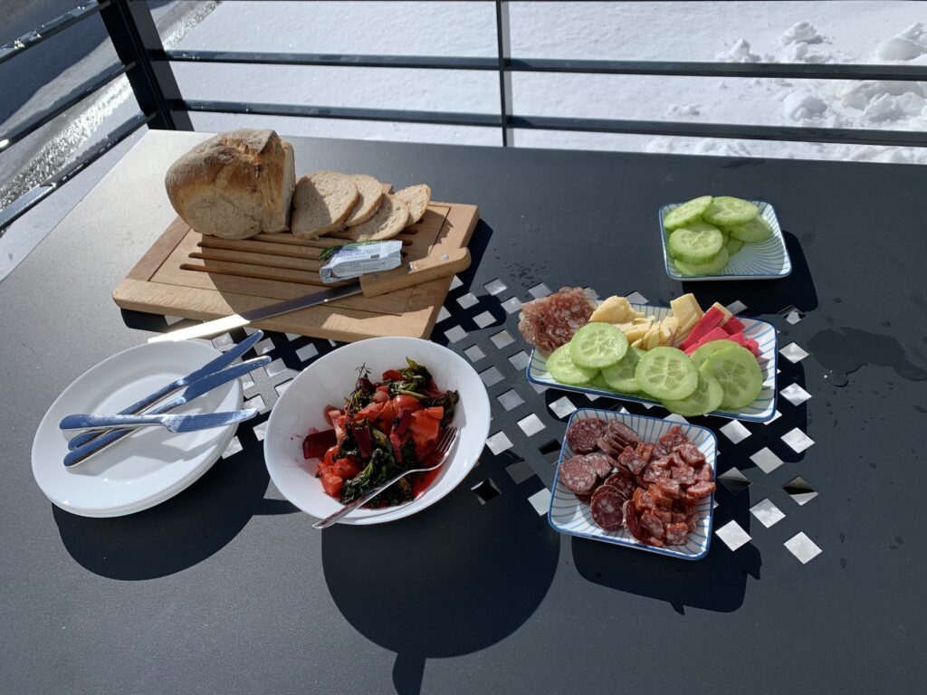 Skiferien sind immer auch etwas Mampfferien. Wobei dieses Jahr die Restaurantbesuche doch eher auf der sparsamen Seite liegen… maximal einen Take-Away-Burger haben wir uns gegönnt…