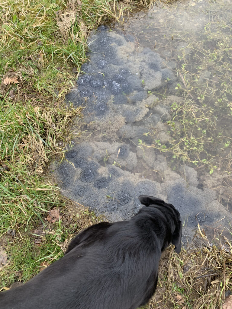 Frühling auch im Wald – hier riesige Mengen von Laich, Jodie konnte sich knapp zurück halten und sprang nicht in den Teich. Wir wünschen eine schwungvolle neue Woche!