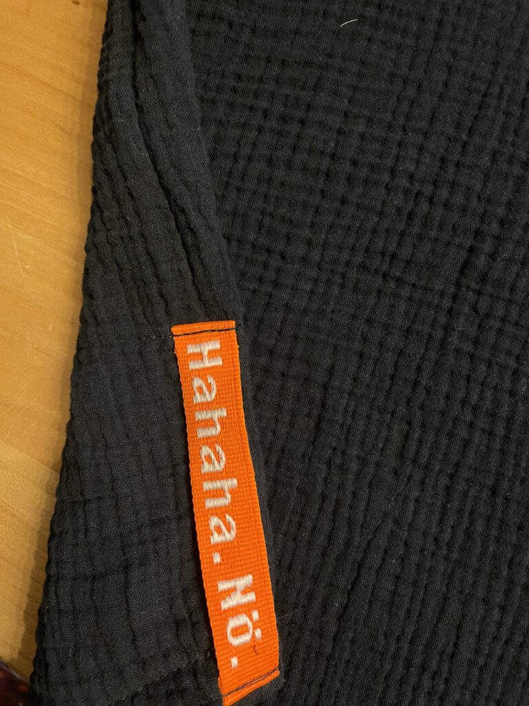 Schnitt ist das «Loosen Up Long Sleeve Top» von Nerida Hansen, Material: ein Testpulloverchen aus schwarzer Double Gauze von Kreando. Das perfekte «Überwurfteil» für abgekühlte Abende nach dem Gewitter. Achtung… Double Gauze ist etwas elastisch, aber der Ausschnitt wird gemäss Schnittmuster für meinen Geschmack definitiv zu gross. Herrlich bequem auf jeden Fall, und angenehm einhüllend-wärmend. Noch ein Einnäher und etwas Webband von Prülla – fertig lustig. Nach gut 1.5h habe ich ein Erfolgserlebnis und kann beruhigt schlafen gehen.