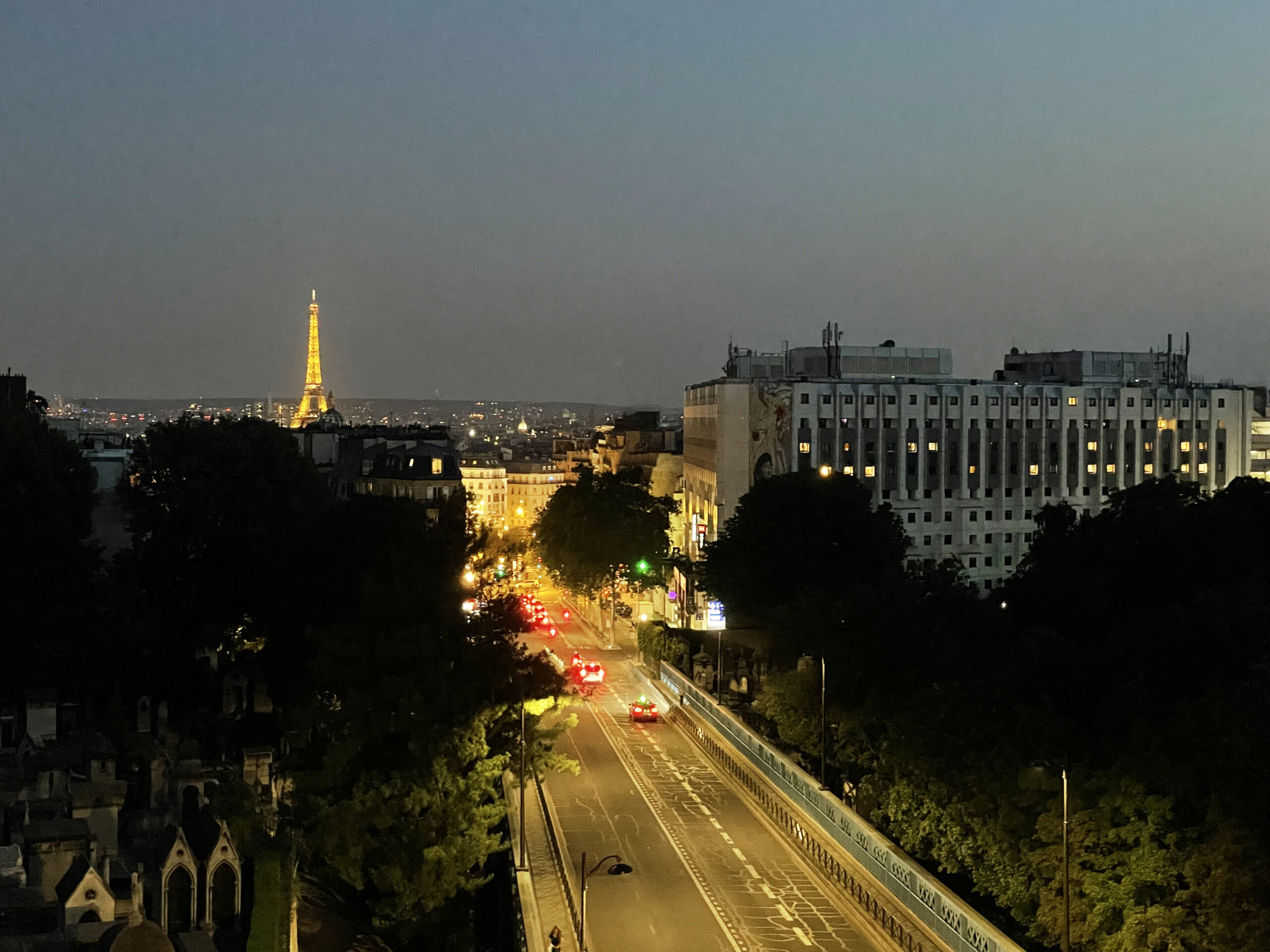Wer jetzt denkt, wir hätten rechtsumkehrt gemacht… sorry, falsch! Eric hat nämlich realisiert, dass man in gut 3h mit dem TGV nach Paris reisen kann…. ich sage nur: Interrail ist eine tolle Sache! Flugs die Koffer gepackt, den Zug bestiegen und schon sassen wir allerfeinstem Nachtessen samt Himbeertörtli! mit umwerfendem Blick in Paris