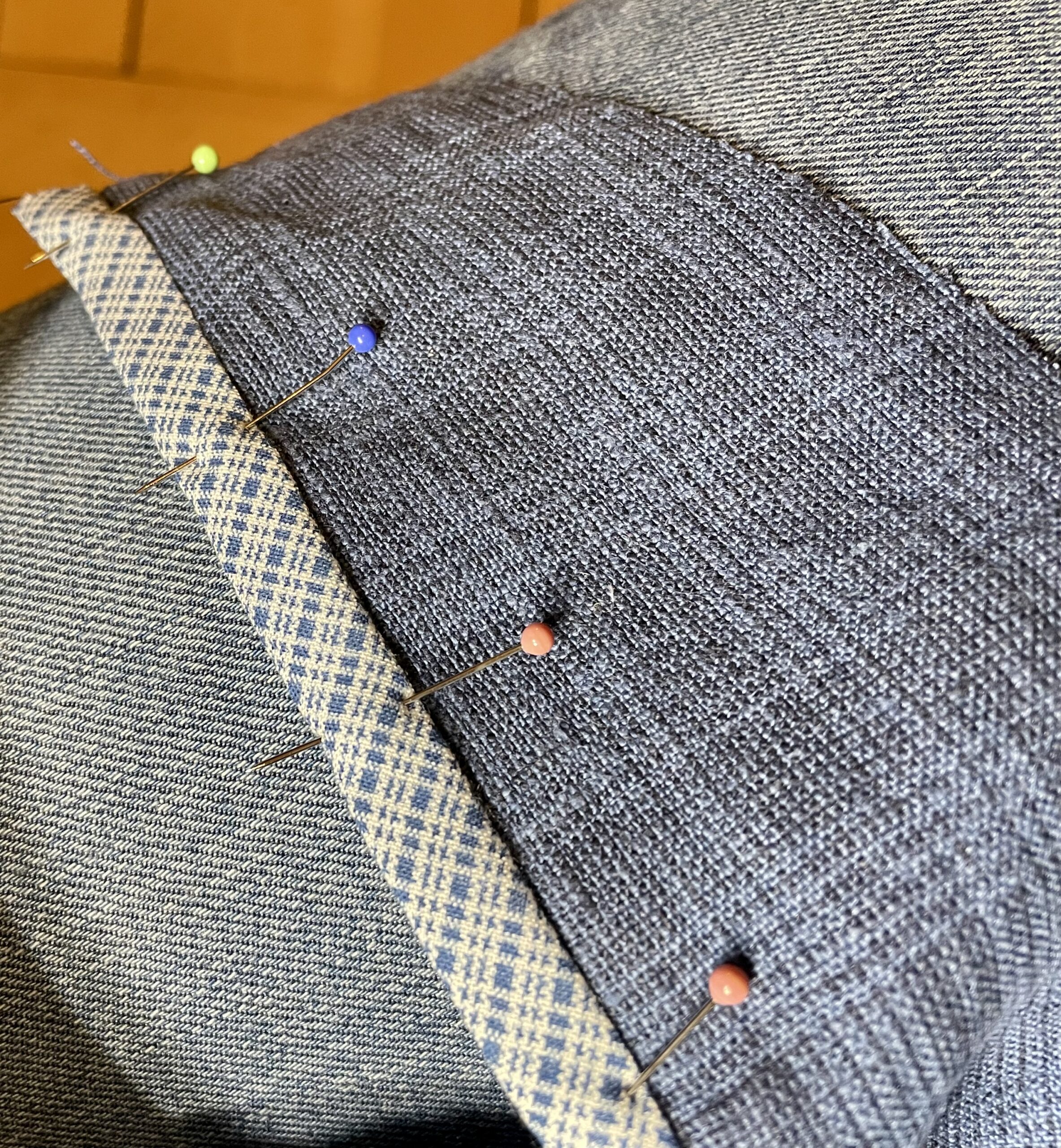 Genäht habe ich das Herrenhemd «James» von Pattydoo, Leinenstoff ist von Merchant & Mills beispielsweise über www.kreando.ch, Knöpfe von Bolli Winterthur, der Dekostoff aus der Restenkiste.