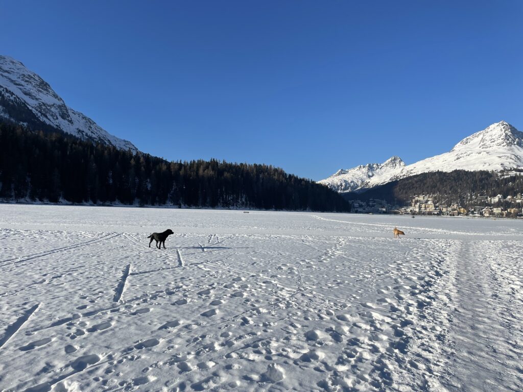 Fasnachtsmontag sei Dank – ein letzter Morgenspaziergang über den See – engadinblauer Himmel, Weite, frische Luft… aaaahhh! und ja, knackig frisch. Hier, gegen 0900h bereits nur noch -12°C, sozusagen brüllend heiss!