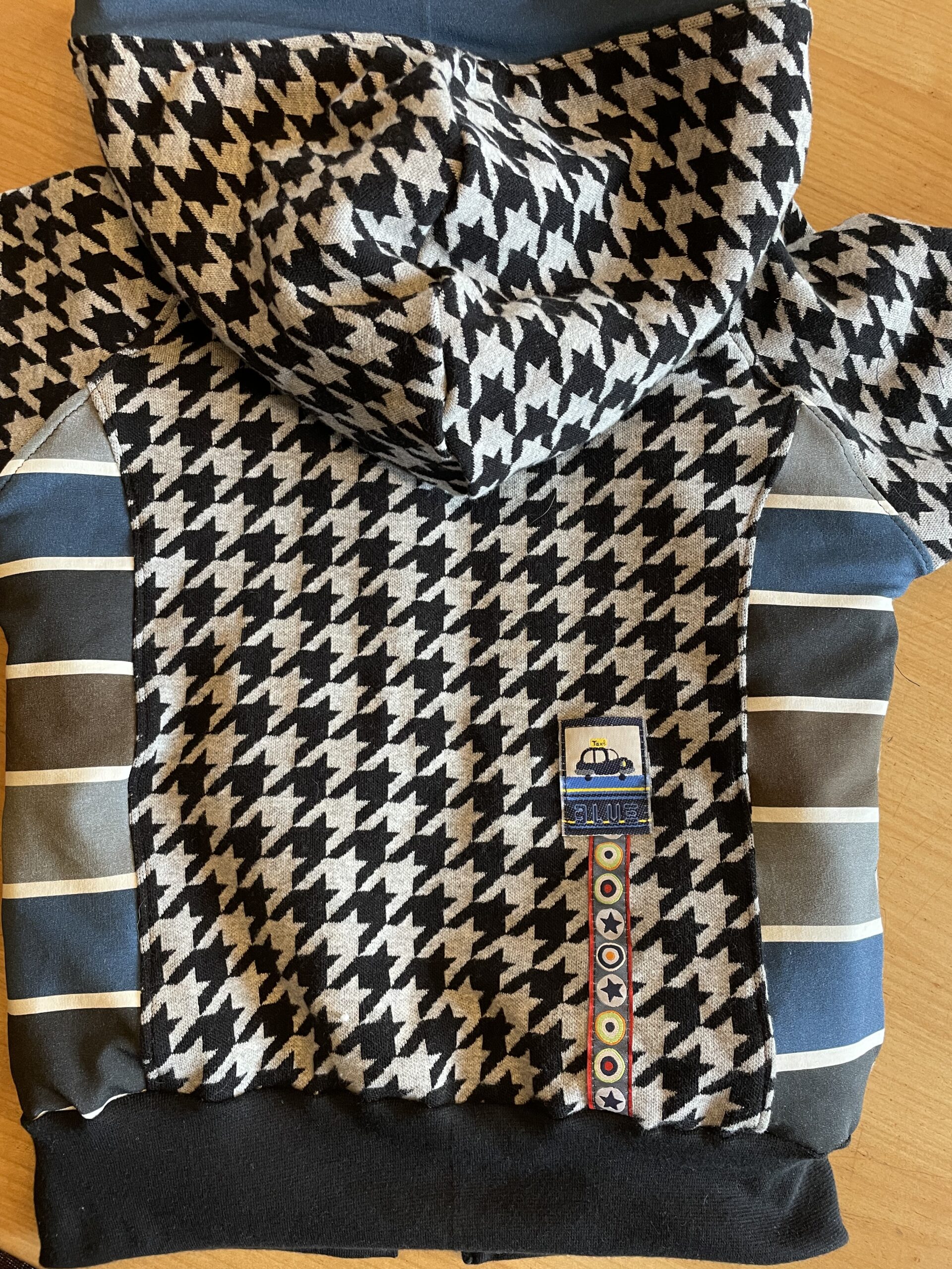 Ach, diese Jacke. Wie ich sie liebe! aus den kleinsten Lieblingsstoffstücken kann man sie noch zusammen puzzeln. Passend für Girls und Boys. Passend für kleinere oder grössere Kids. Wir hatten sie schon für AnnA und Eric in allen Grössen – jetzt gilt es Reste von Erics und meiner Jacke abzubauen und siehe da, Bandito. Für alle(s) gut!
