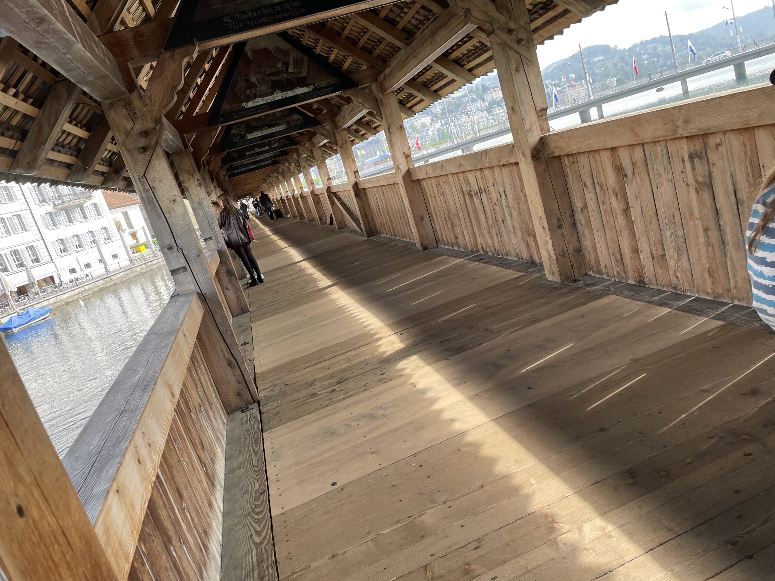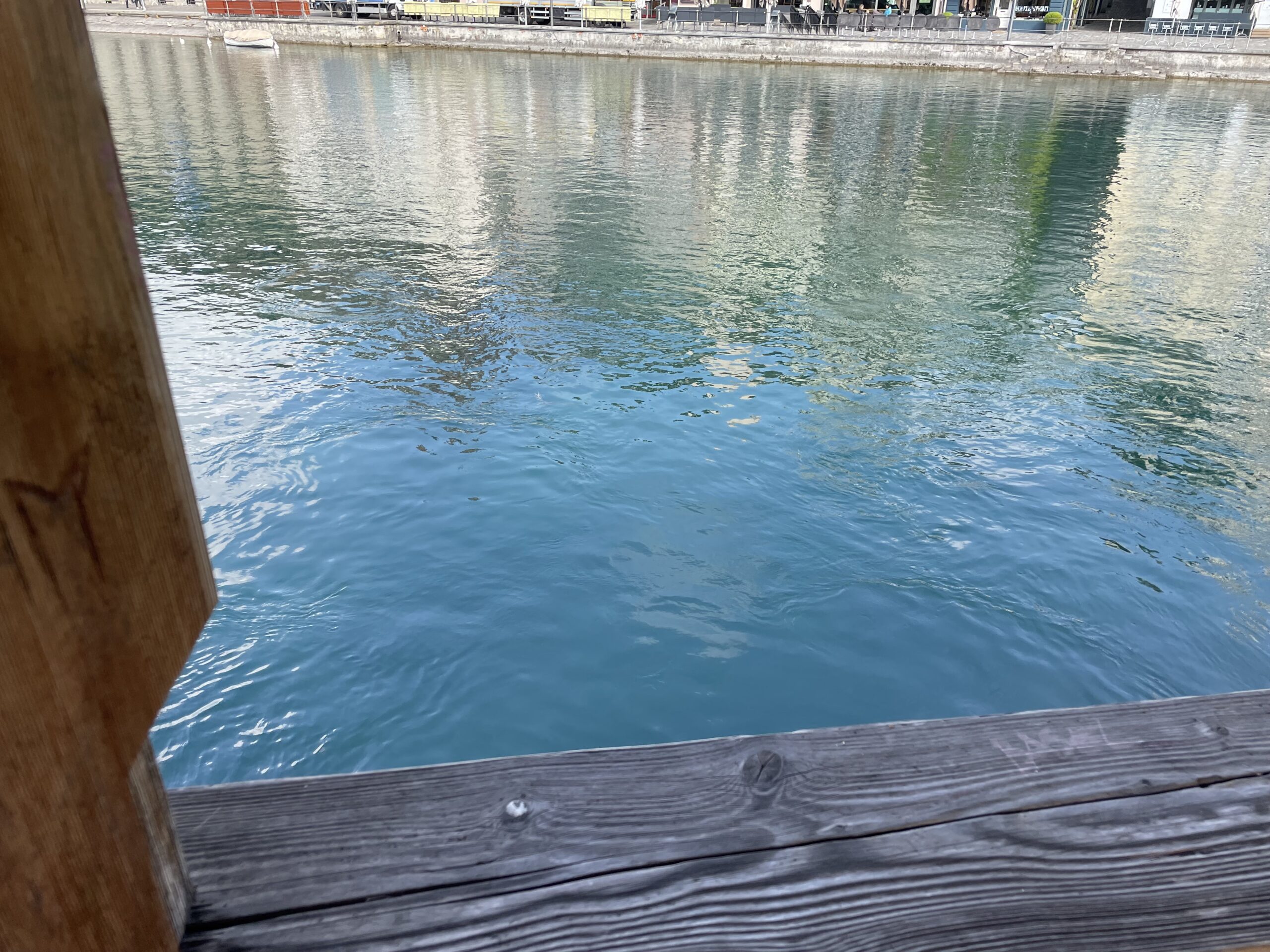 Etwas Sightseeing muss doch noch sein. Herrlich, ganz ohne Touristen. Also fast ganz ohne. Dafür jede Menge leerer Läden. Und die Reuss, tiefblaugrün. Und zum lädelä jede Menge Zeit – das gibt ungeahnte Einblicke in minikleine WCs, aber mit spannenden Plättli an der Wand und bietet Inspiration in orange und ja, es gäbe das Täschli auch noch in pink… Und nein, ich war nicht in der Bäckerei!