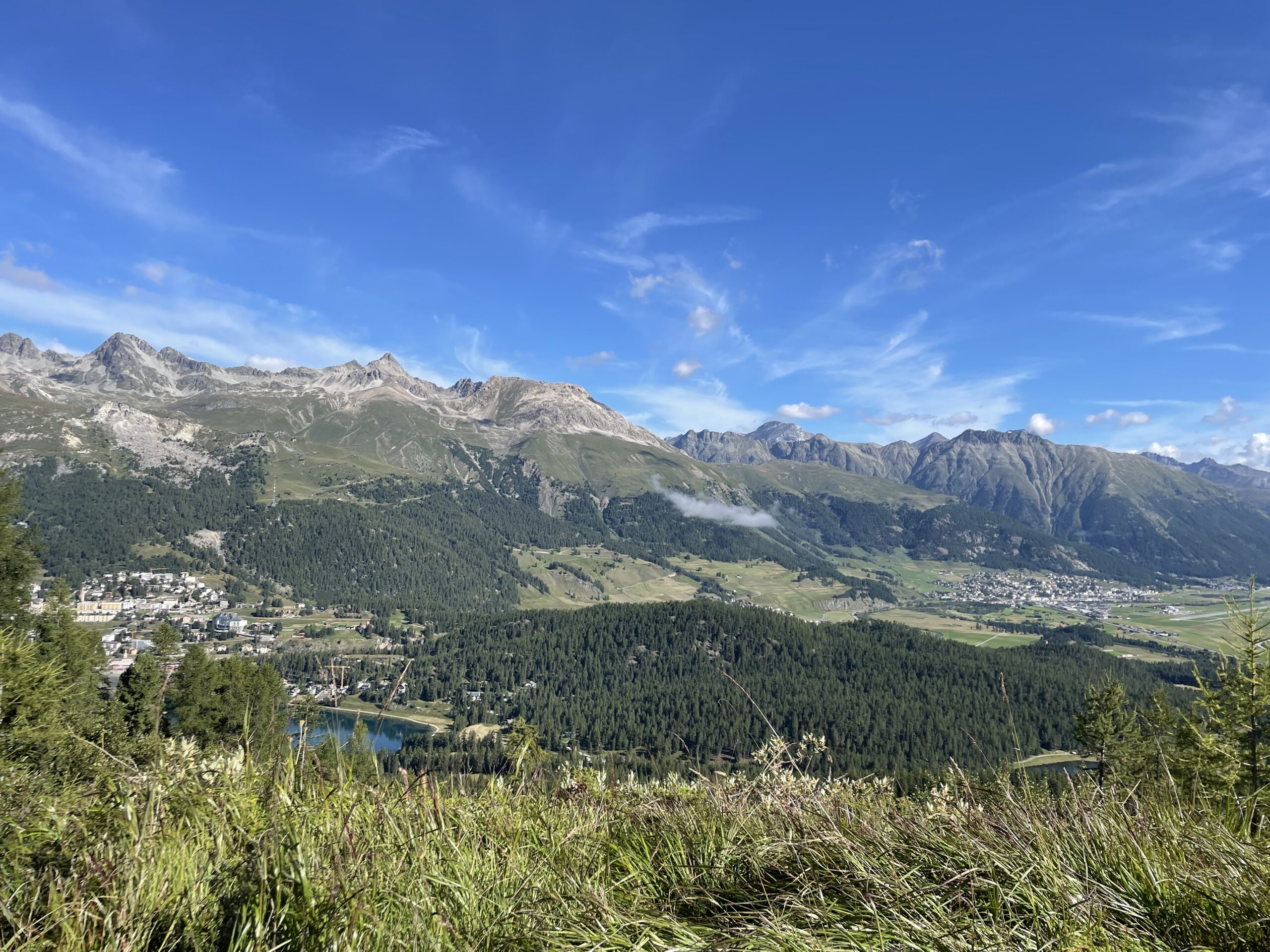 ok, zum einen könnte das mit meiner kaputten RECHTEN Pfote zusammen hängen, die alles so furchtbar langsam und umständlich macht. ALLES. Also auch BH schliessen, Hose raufziehen, Rüebli rüsten, von töggelä ganz zu schweigen. Seich. Aber die Wanderung von St. Moritz Bad über Muottas Schlarigna war genial. Und genial einsam. Das rutschige Felsband im Abstieg nach Pontresina hätte trotzdem nicht sein müssen. Doof.
