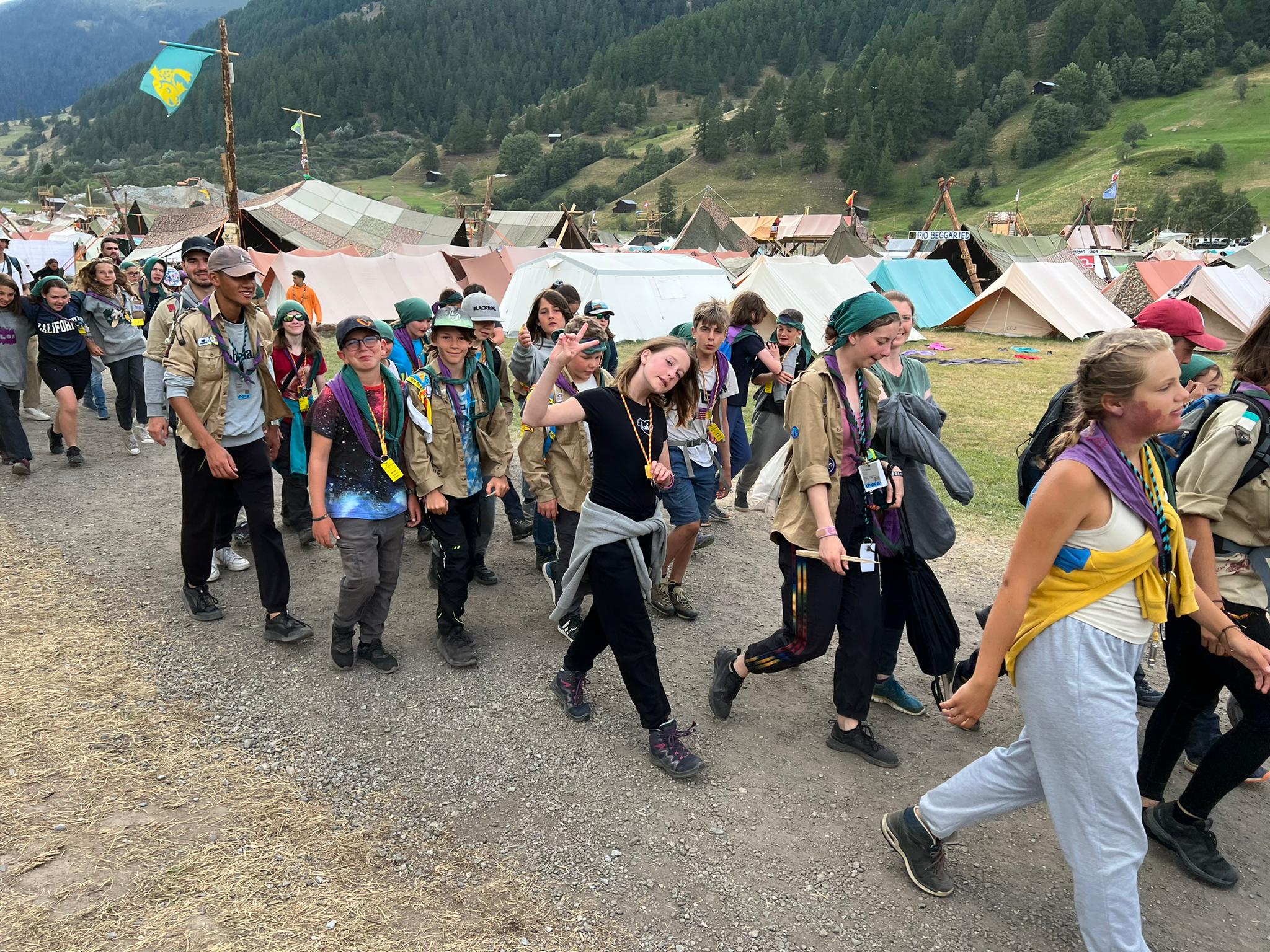 Auf die Gefahr hin, mich zu wiederholen… gäbe es die Pfadi nicht, müsste man sie glattwegs erfinden. Es ist sehr wohltuend zu sehen, mit welcher Ordnung und Disziplin diese 35’000 Menschen miteinander leben. Es besteht noch Hoffnung für die Menschheit… nein, man latscht nicht einfach quer durch das mit Bändern abgesperrte Gelände der anderen Pfadi, sondern fragt höflich, ob man sich in den Schatten setzen dürfe, weil man einen Posten zu betreuen habe. Es ist ja eigentlich ganz einfach…