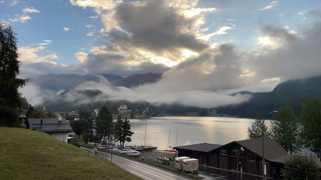 Aber alles der Reihe nach. Für eine wichtige Besprechung habe ich mich auf vielseitigen Wunsch eines älteren Herrn zwecks LIVE-Meeting in die Berge begeben. Zu dumm, dass ausgerechnet dieser krank darnieder lag und wir demzufolge einsam zu zweit mit den anderen beiden über Bildschirm kommunizierten. Schwamm drüber… Das eigene Hüüsli gefällt je länger mehr auch von der Bahnseite her, die Verpflegung im Zug war schon schlimmer – der Espresso war wirklich ausgezeichnet und der Frühmorgenspaziergang mit Nebelschwaden entlang des Sees fast die gesamte Reise wert. Endlich Zeit für meinen Podcast 🙂