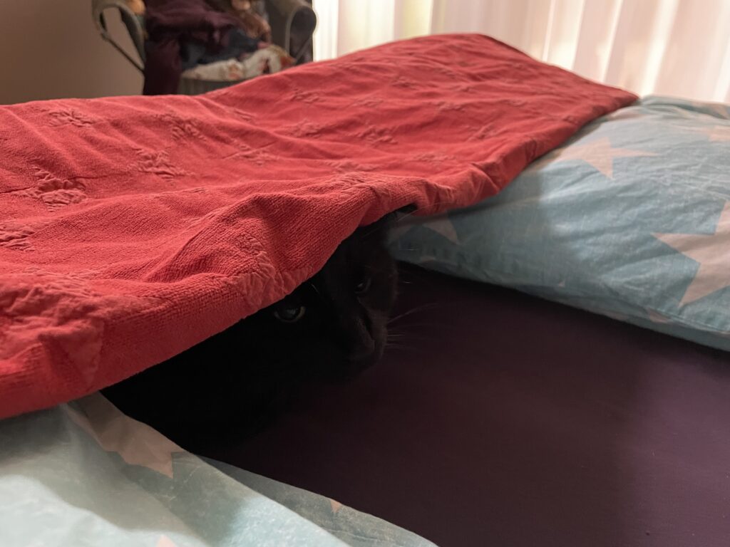 Wenn Nero nicht nur im Haus ist, sondern noch auf dem Bett unter die Decke kriecht, ja dann, ist guter Rat teuer und das Wetter äusserst misslich!