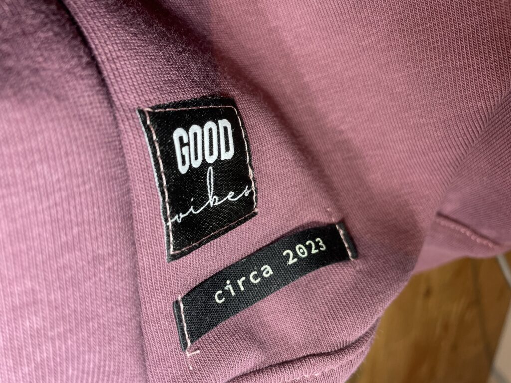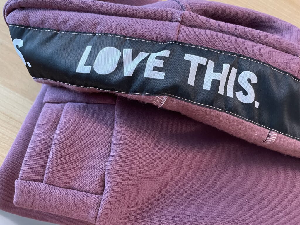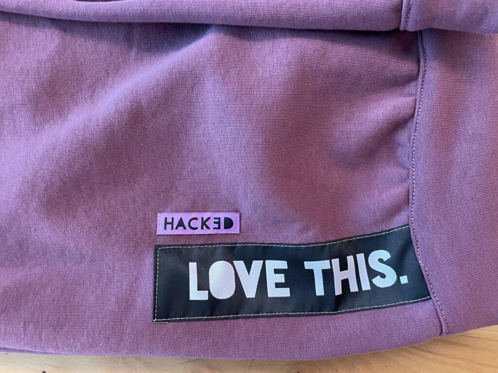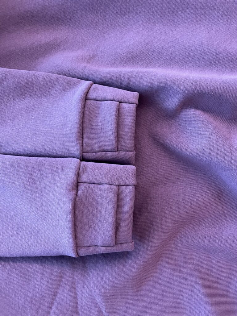 Schnitt: Basic Sweater von Leni-P.Punkt, Heavy Sweat und Statement-Band ebenfalls von LeniP.Punkt. Labels von hm… aus dem Fundus. Die Farbe (Aubergine ist im Original am ehesten wie auf dem ersten Bild. Nicht so kaltviolett-lastig.