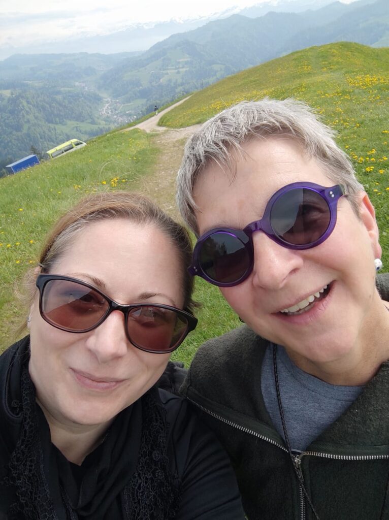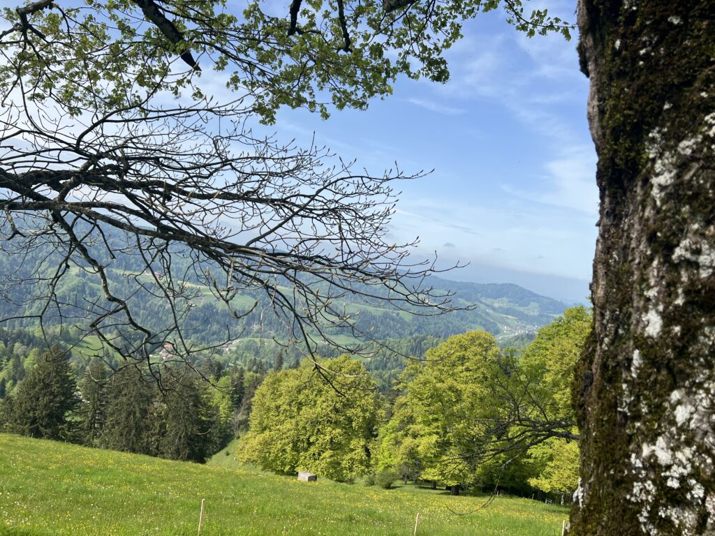 Auffahrt im Regen ersoffen, aber dann kam sozusagen über Nacht der Sommer. Und feucht und warm… ergibt eine Explosion in der Natur. Gräser, Bäume, alles grünt und blüht. Wir haben die Gunst des frühen Morgens genutzt und sind aufs Hörnli gekeucht – es hat sich gelohnt! und Dina hat überlebt!