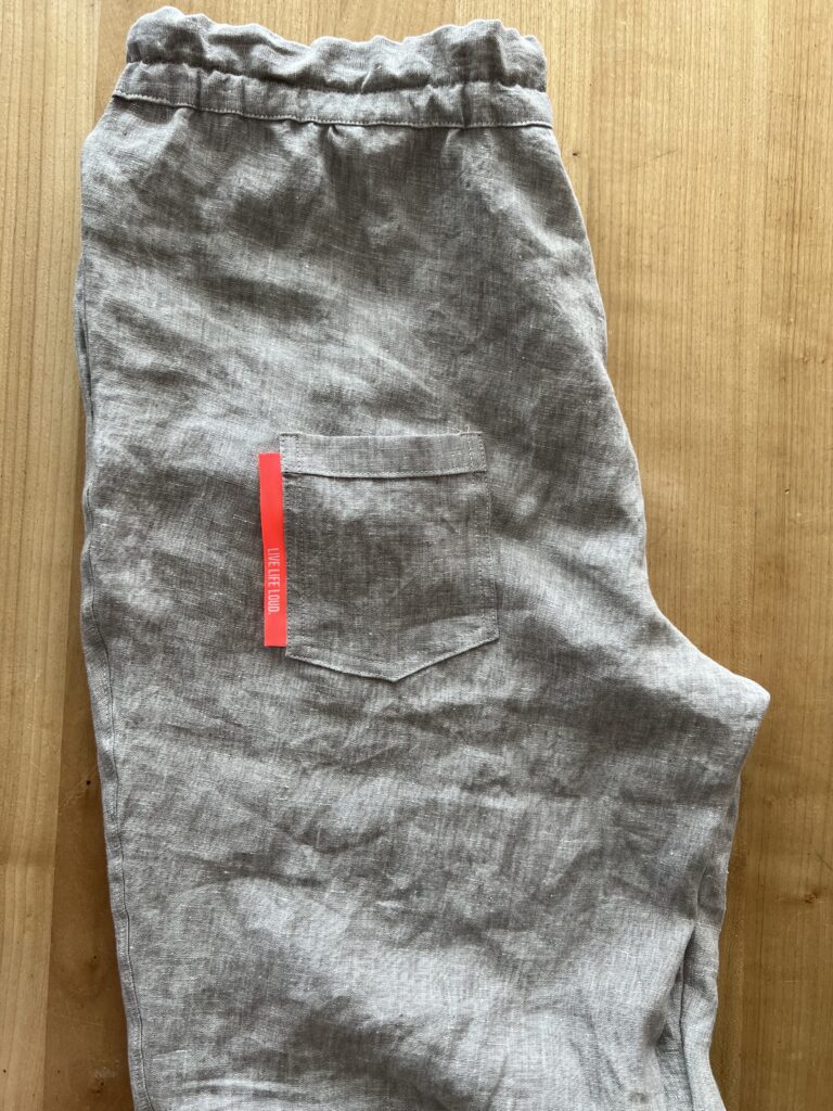 Modell: Miles von www.pattydoo.de, Material von hm… war eine günstige, leichte Leinenmischung. Genäht in der korrekten Grösse, die Gesässtaschen etwas weit unten für meinen Geschmack, aber der Besitzt strahlt. Und das ist die Hauptsache!