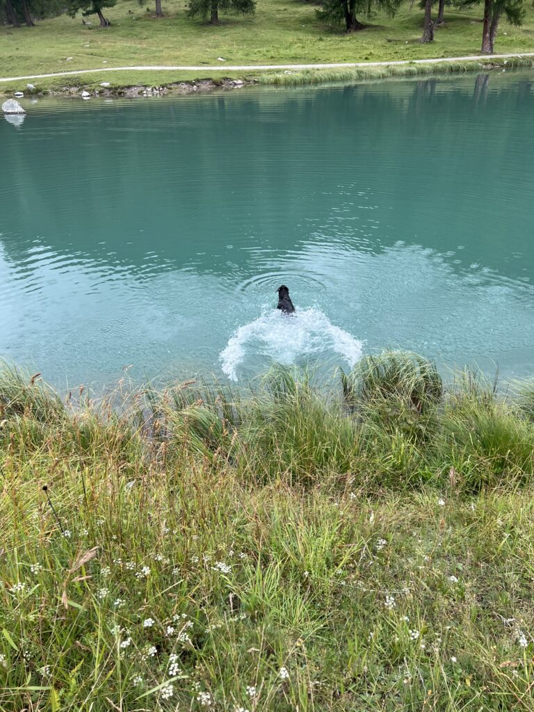 Es gäbe noch viel mehr tolle Fotos – am meisten gefreut hat mich, dass auch Opi Bob mit seinen beinahe 13 Jahren locker-flockig (na ja, mindestens am Anfang) die 15km ins Val Rosegg und zurück abgetrabt hat. Wir waren aber auch noch auf dem Albula (mit Kaffeestopp in Bergün – danke H. & B.), wir waren im Bergell, im Val Müstair (Danke Mia und L. & J.) und auf dem Hahnensee, bei Regen und Sonne und allem dazwischen.