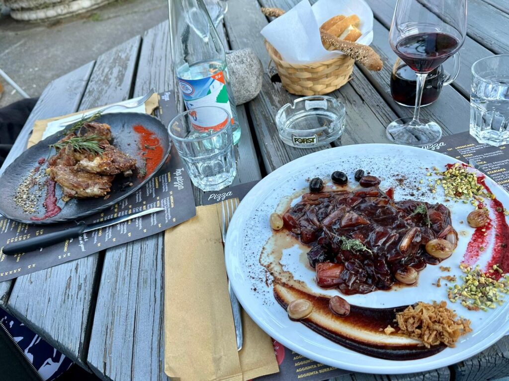 Aber was wären Ferien ohne Essen? Eben… Und weil Essen in Begleitung besonders nett ist, haben wir uns auch diesbezüglich ausgetobt. Viele Freunde getroffen, viel geredet, dumm und anders, hatten Wurst vom Grill und Hohrücken von Hatecke, roten Wein und Sprudel, Wasser und Saft und Kaffee.