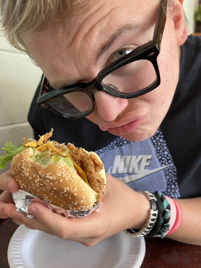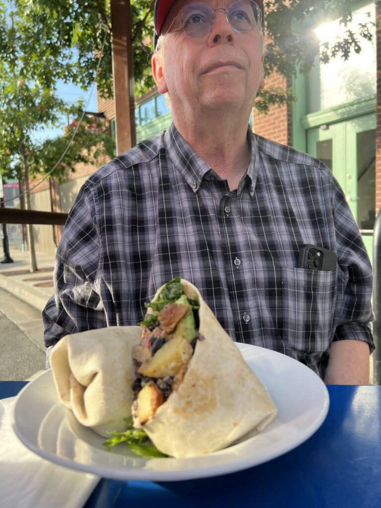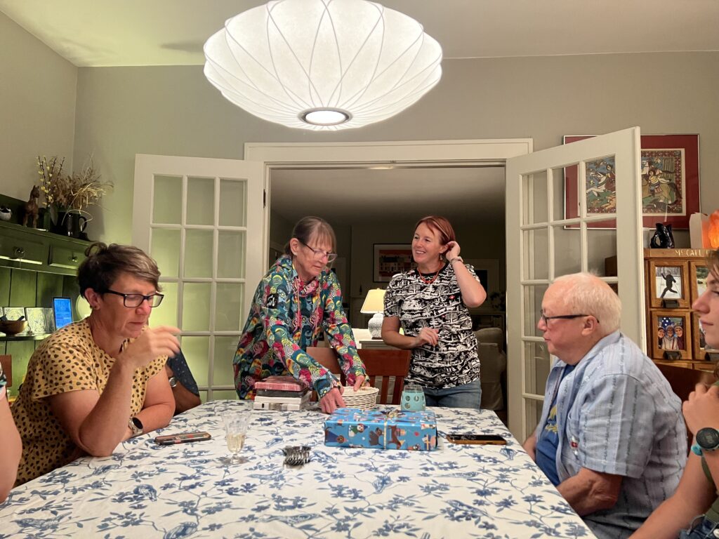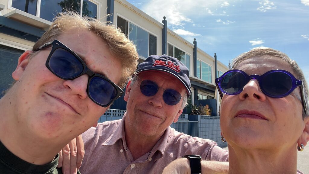 Wir feiern aber auch noch ausgiebig Dan’s 79. Geburtstag. Am Montag noch mit der versammelten Familie – wir gehören auch dazu 🙂 Dan wird bei Erics Konzert ganz rührselig – es IST aber auch berührend, was die beiden verbindet. Wir schmieden Pläne für Workshops in Europa, Dan ist Feuer und Flamme… schauen wir mal, dass Corona nicht wieder dazwischen funkt. Am Dienstag kommt noch Blake zu Besuch. Extra aus West Virginia angereist, um mit Eric zu quasseln und Musik zu machen. Koni haut’s um, die zwei verstehen sich auch musikalisch bestens. Wer weiss… vielleicht darf ich auf www.ericcblue.com mal noch etwas veröffentlichen. Soweit sind wir allerdings noch nicht.