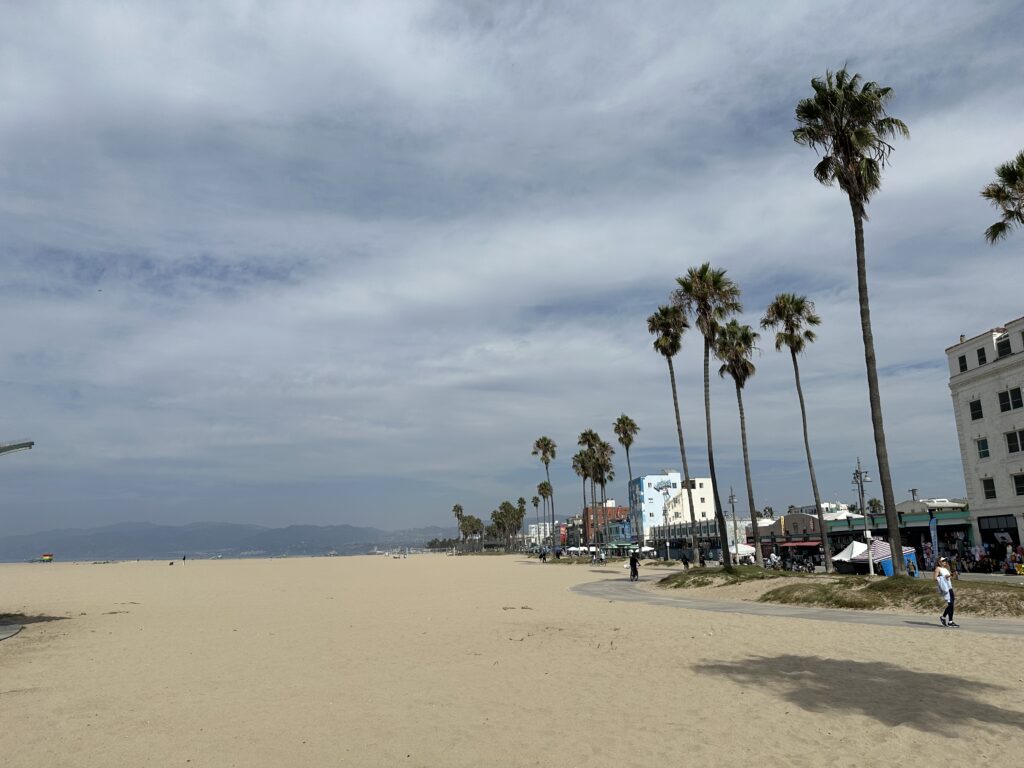 Und zack, schon ist unser letzter Tag in Pasadena angebrochen. Wir machen – auf meinen vielseitigen Wunsch- das volle Touristenprogramm am Strand. Venice Beach, Sonne, Sand… aber auch viele Obdachlose, Spinner, Drogenabhängige. Nicht nur am Strand – besonders beelenden mich die Hinweise auf diese Menschen entlang der Autobahnen. Da gibt es notdürftige Hütten, Abfall, Dreck und tatsächlich, dazwischen liegt ein Mensch. Selbst in Pasadena liegen sie teilweise auf der Strasse, die einen auf einem Karton und notdürftig zugedeckt, andere hängen den ganzen Tag am Straßenrand, blicken mit entrücktem Blick (sic!) durch einen hindurch, murmeln etwas vor sich hin… traurig.