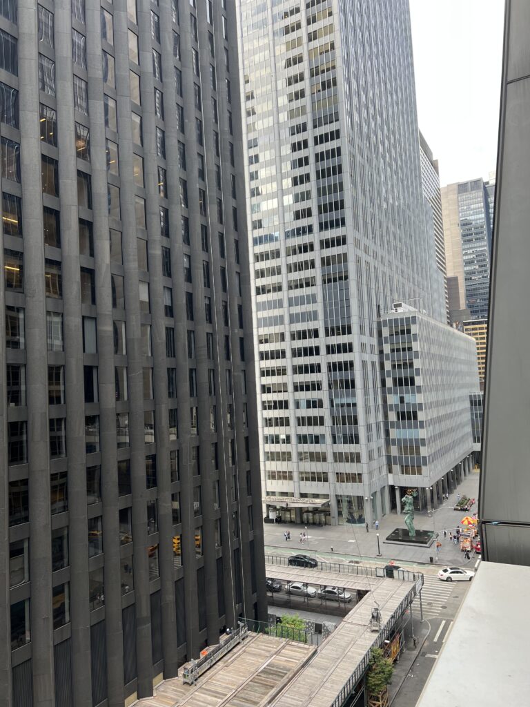 Wir treffen die Männer im Hudson Square und nehmen mit Kaffee gestärkt den Aufzug in den 66. Stock und atmen erst einmal tiiiief durch. Die Aussicht ist dä füdliblutte Wahnsinn!