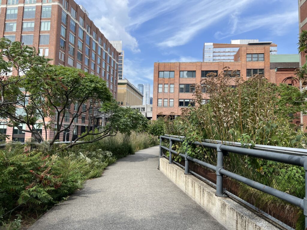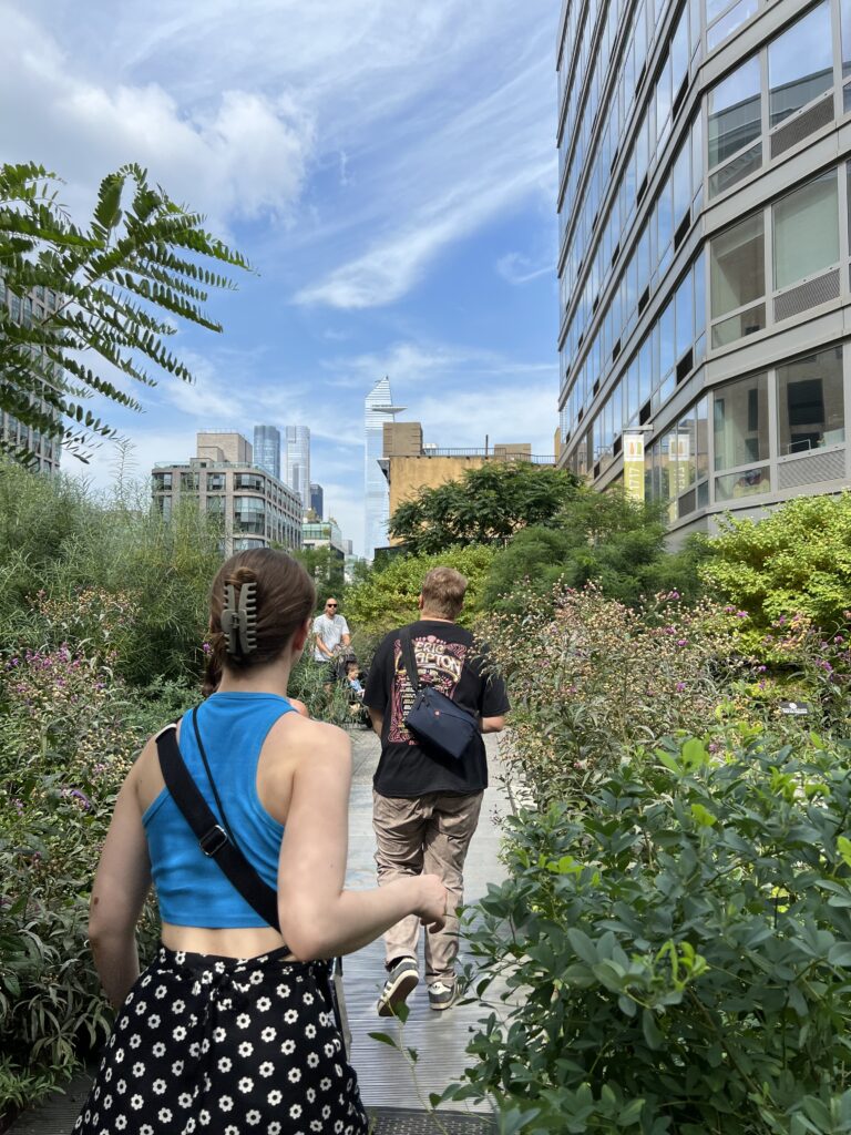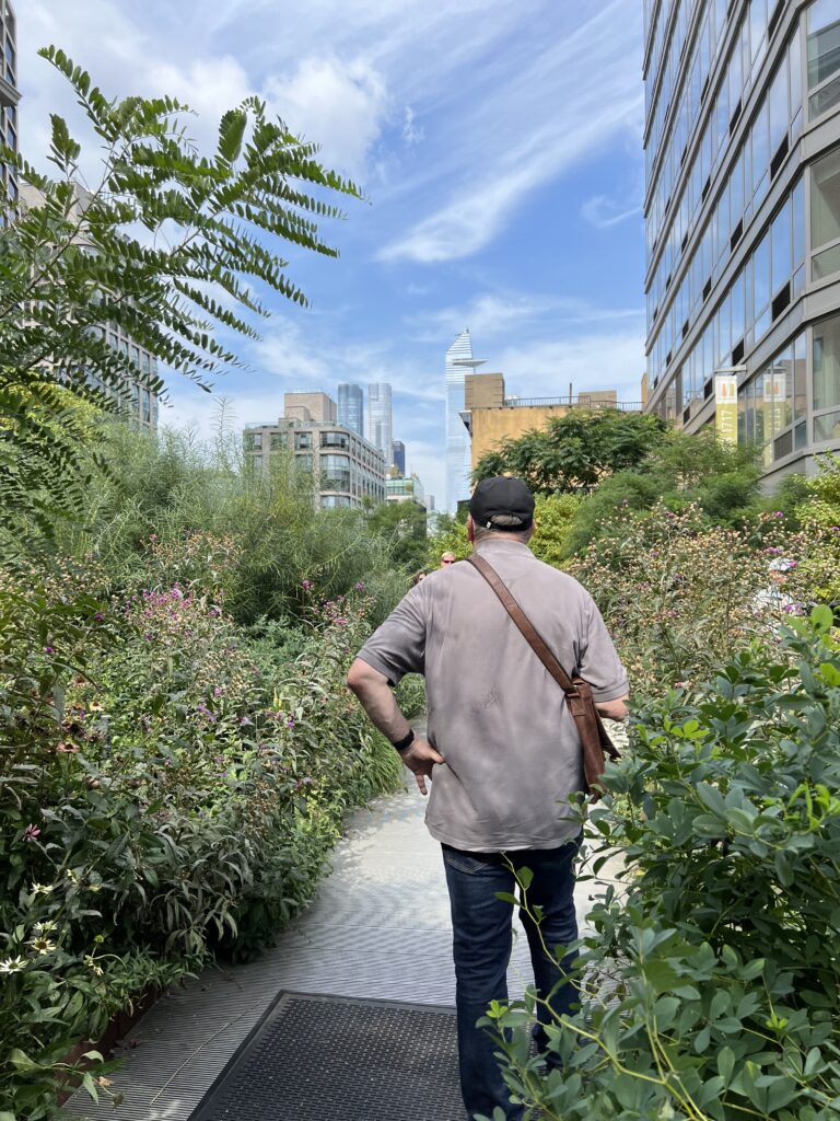 Die High Line, eine begrünte, alte Bahnlinie quer durch New York bietet ungeahnte Einblicke und versetzt in eine andere Welt. Wir beenden die Tour am Hundson Square mit einem Eiskaffee und verabschieden die Männer, die den Abend musikalisch ausklingen lassen. Eric ist geplättet ob der gebotenen Qualität…