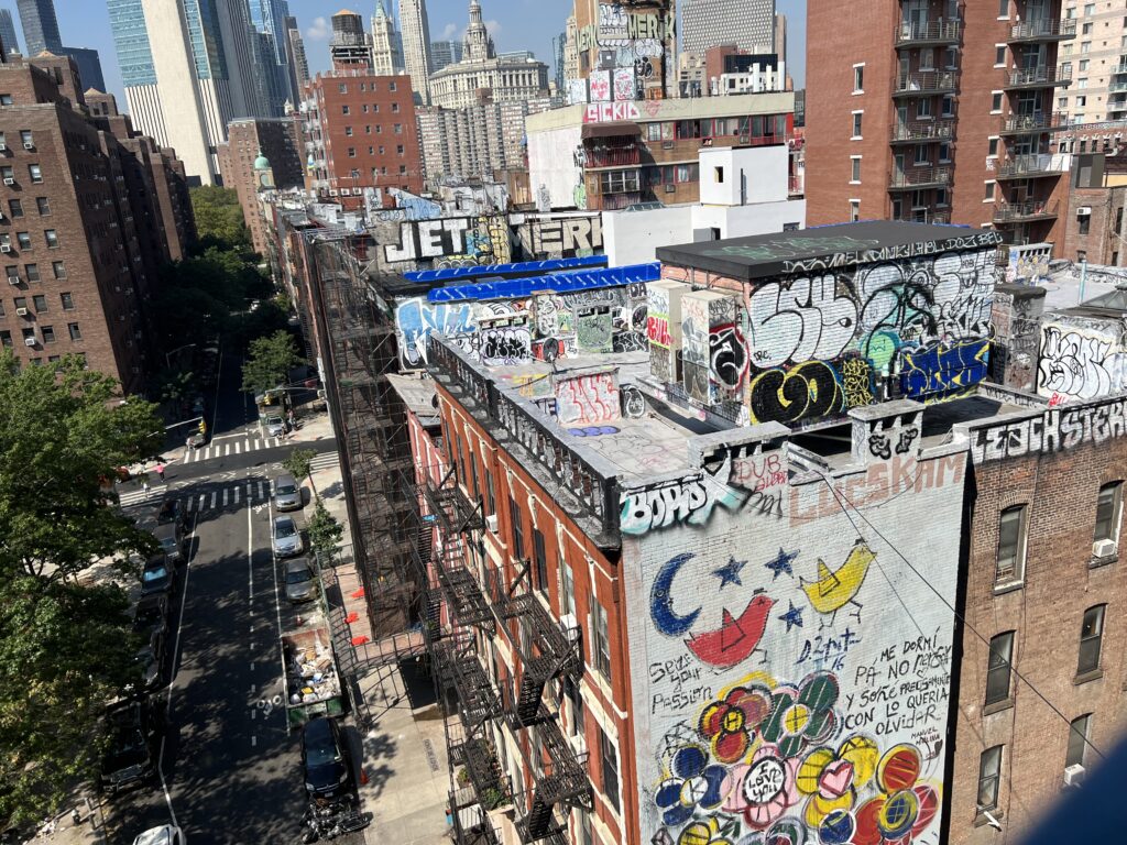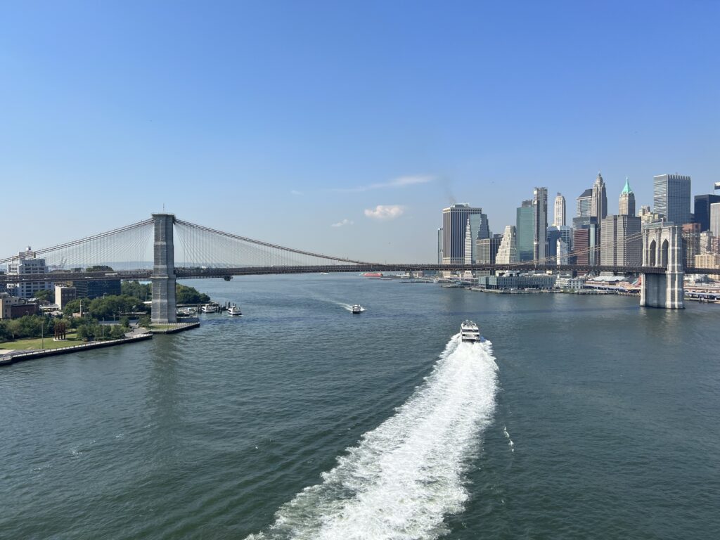 Und schon sind wir am letzten gemeinsamen Tag angekommen… AnnA und ich fahren etwas früher Downtown, derweilen die Männer versuchen, ein Paket via UPS zu Hause zustellen zu lassen. Die Brooklynbridge ist lang und heiss, aber die Aussicht umwerfend. Wir sind beglückt… und nur etwas frustriert, als uns Koni klar macht, dass wir über die falsche Brücke, über die Manhattanbridge gewandert sind. Egal, Skyline umwerfend, Graffitis ebenso.
