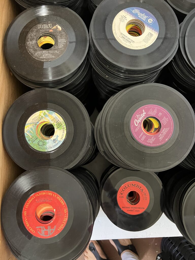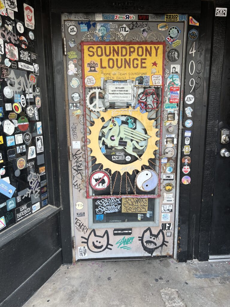 Grosse Ehre, die Herren werden ins Innere vorgelassen, lernen die Mäzenin Teresa Knox kennen, fragen ein Loch in den Bauch und strahlen 3h später über alle vier Backen. Die Strasse runter (rechts und links gehört alles Teresa…) in den Plattenladen… und endlich, fast 5h und einen grauenhaften Kaffee später sind wir zurück im Hotel. Geplättet! beeindruckt, voller Ideen…