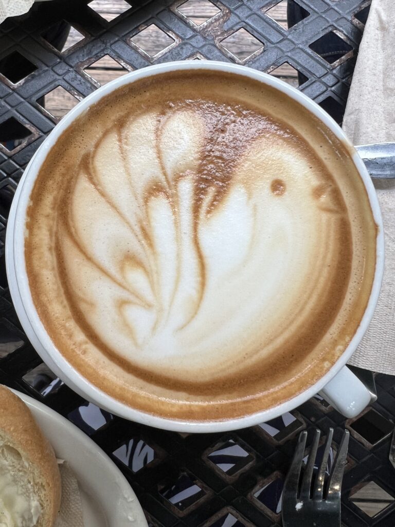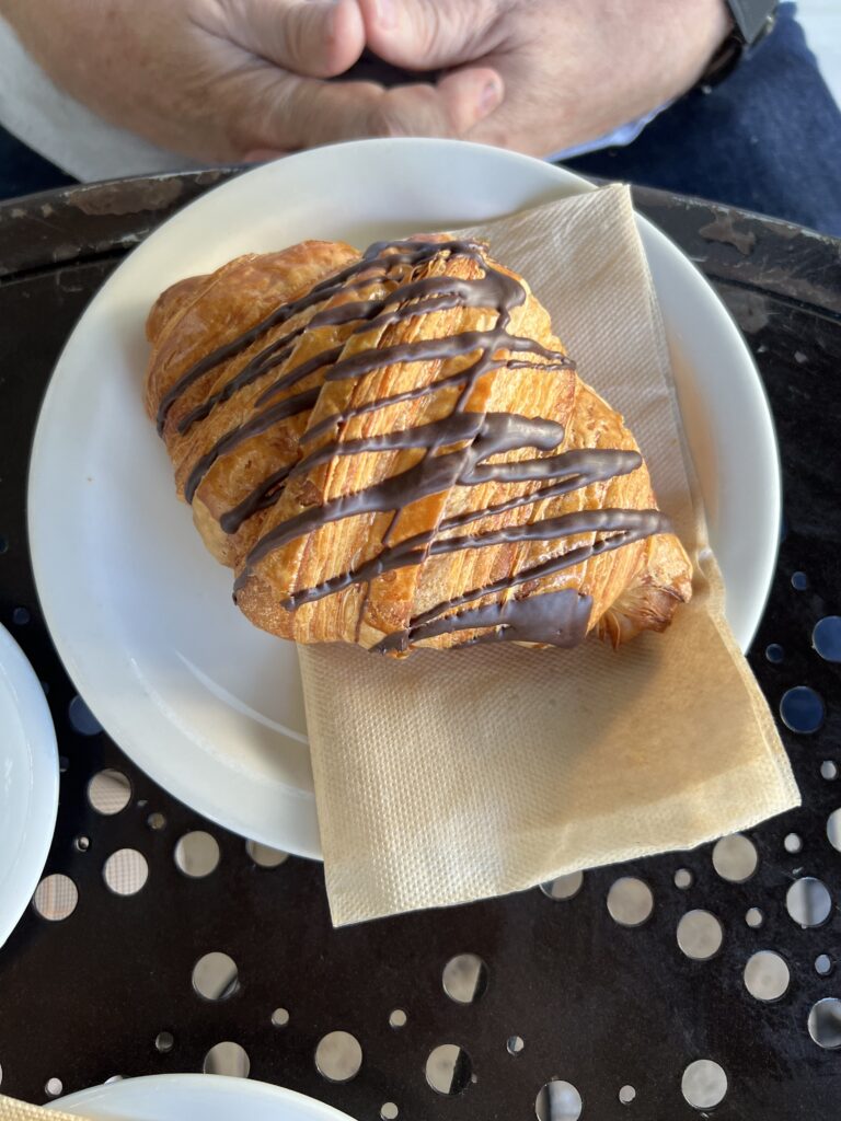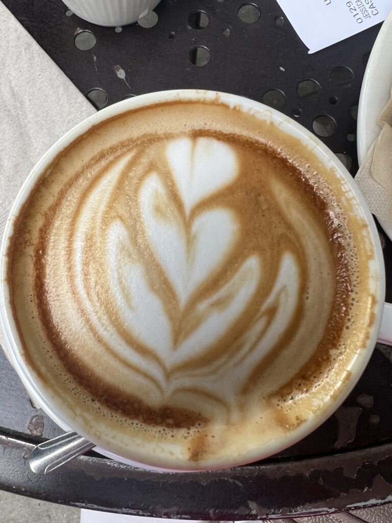 Wir entdecken das Urth-Coffee und sind beglückt. Endlich anständiger Kaffee, wunderbare Croissants mit und ohne Schokolade, Beeren mit Joghurt, alles mögliche, mmmmh!