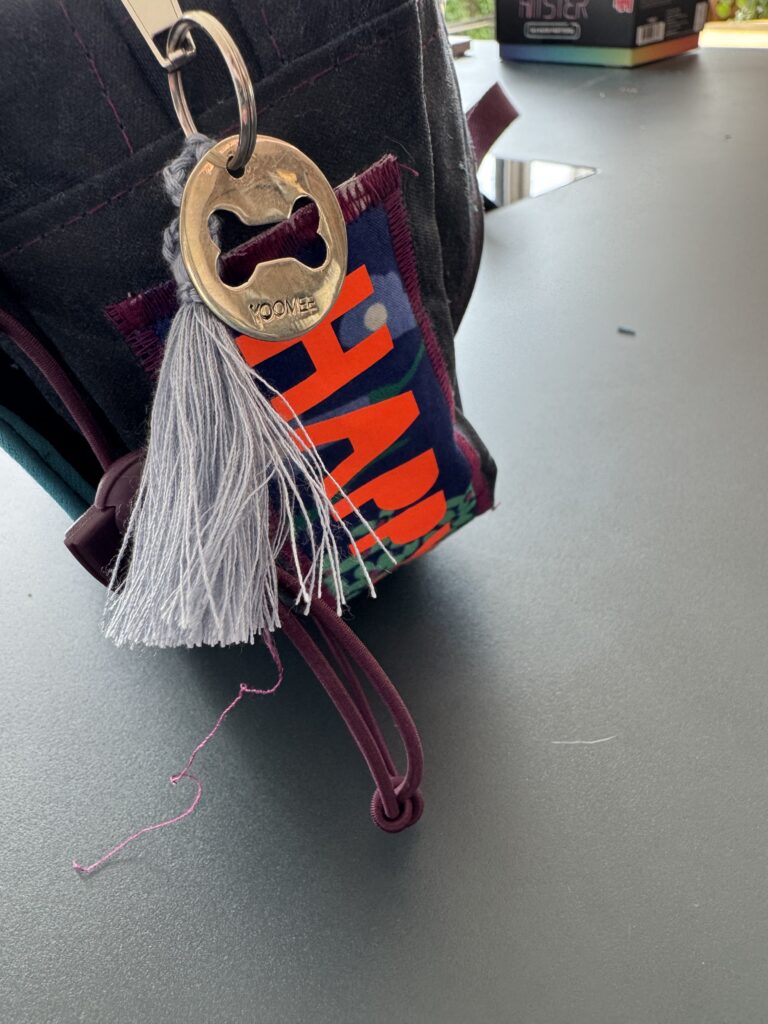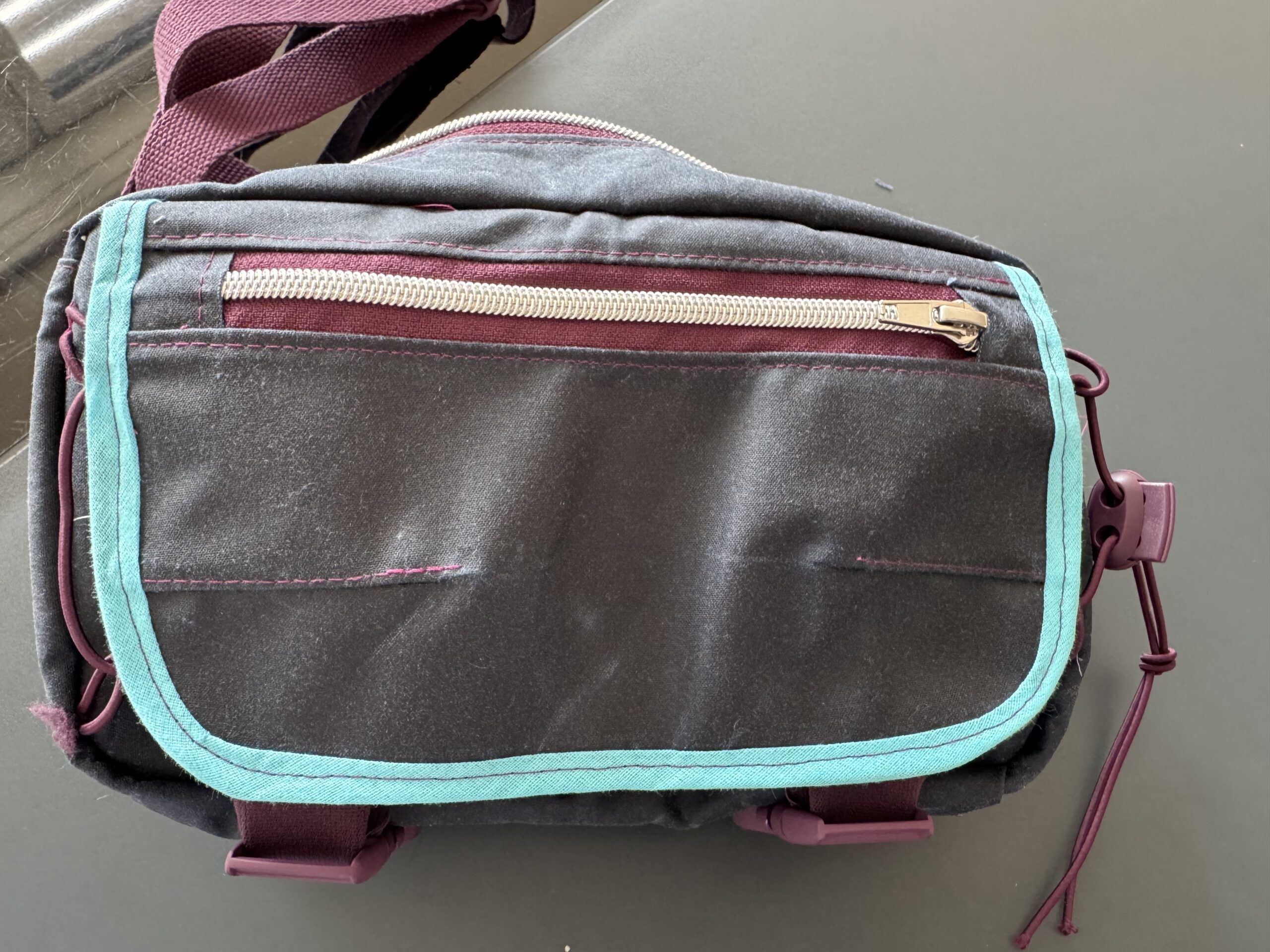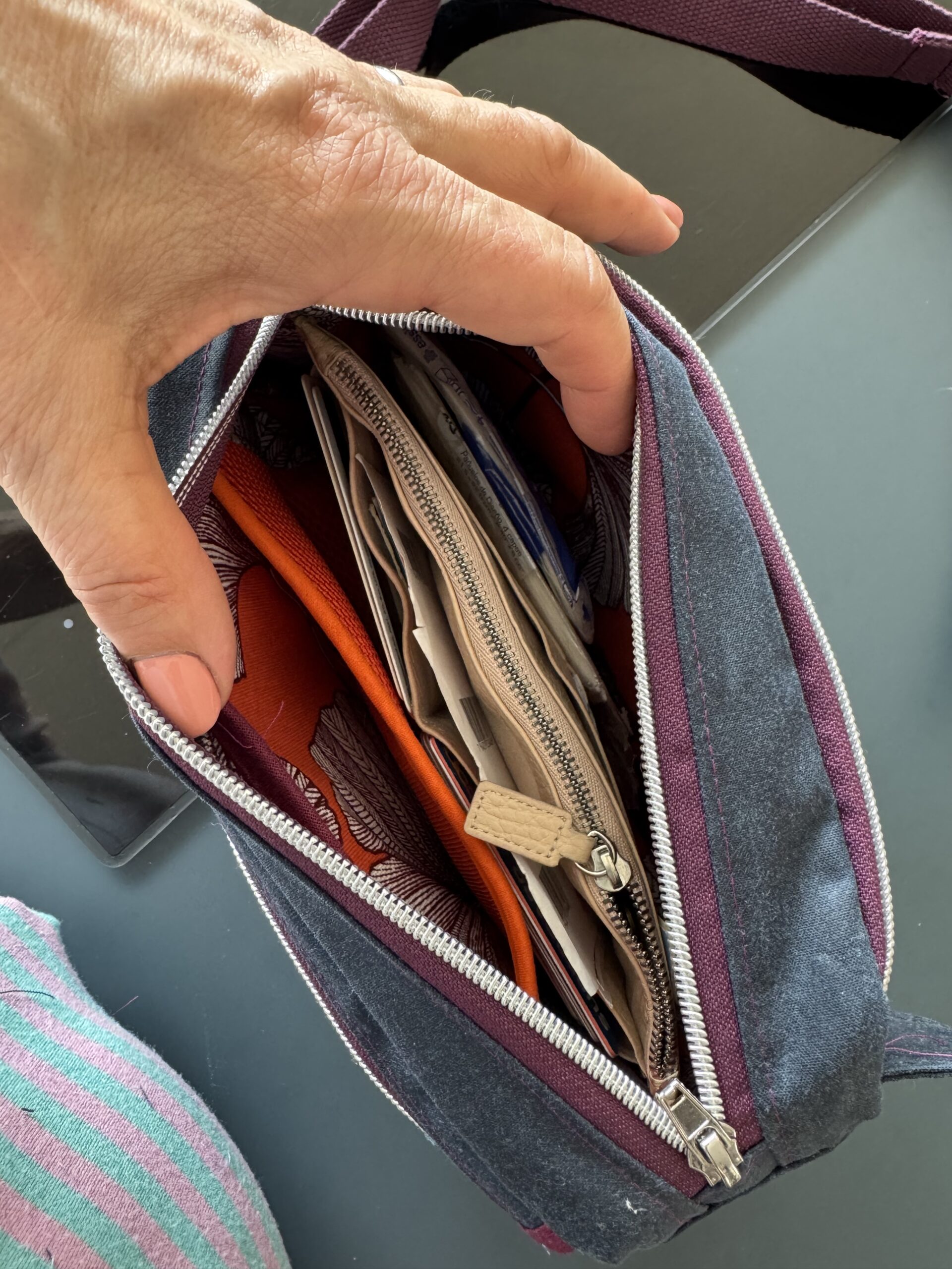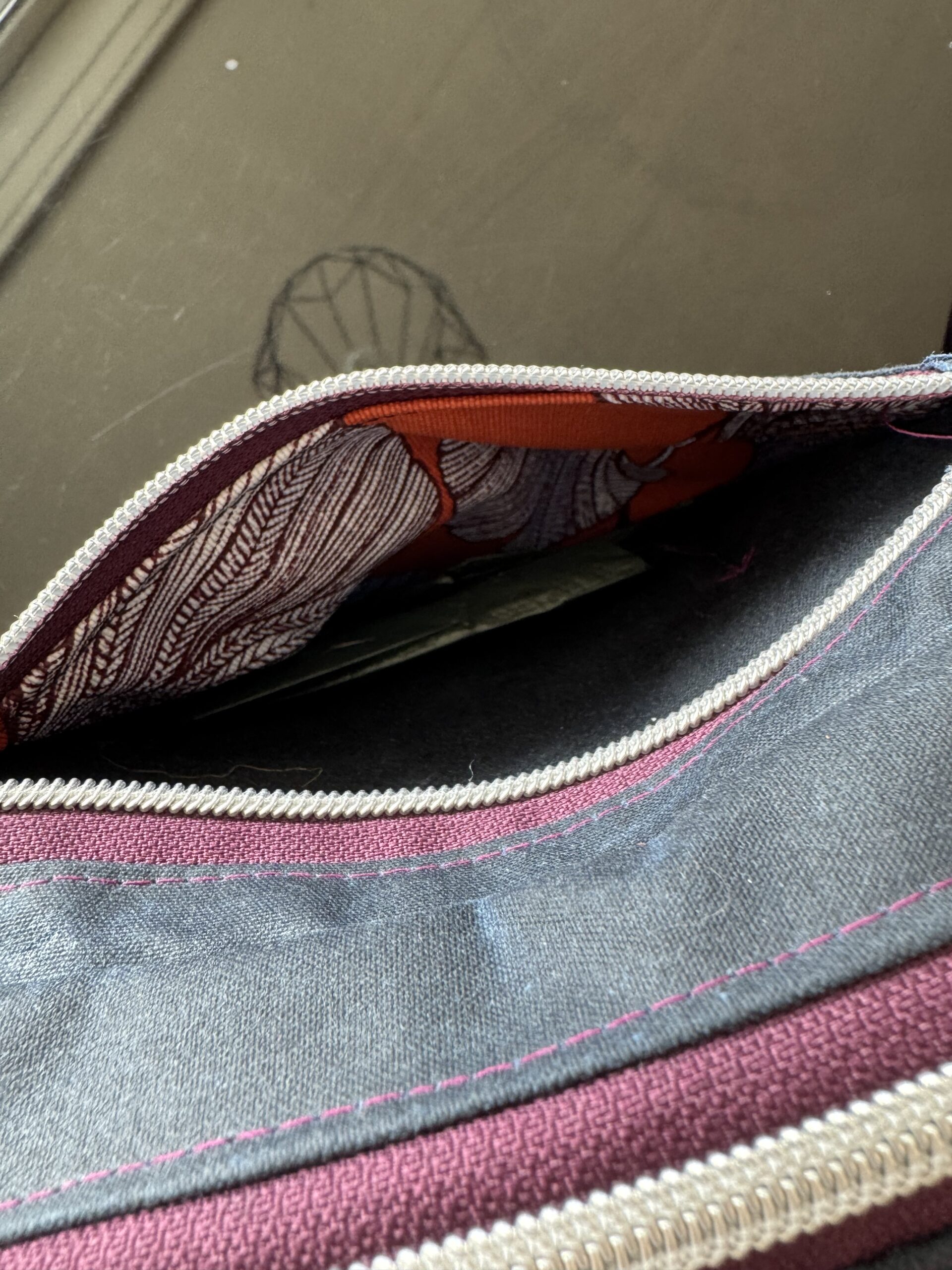 Sagen wir es mal vorsichtig… nach Fertigstellung der ersten Version hatte ich zwei Teile übrig. Und jetzt dafür ein grosses Fach, in das man wahlweise über Reissverschluss A oder Reissverschluss B etwas einpacken kann. Upsi… ABER ansonsten war ich schon ganz zufrieden.