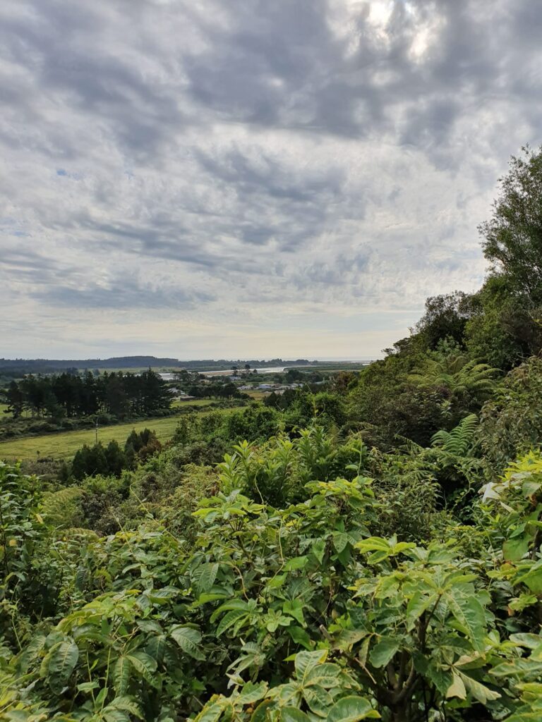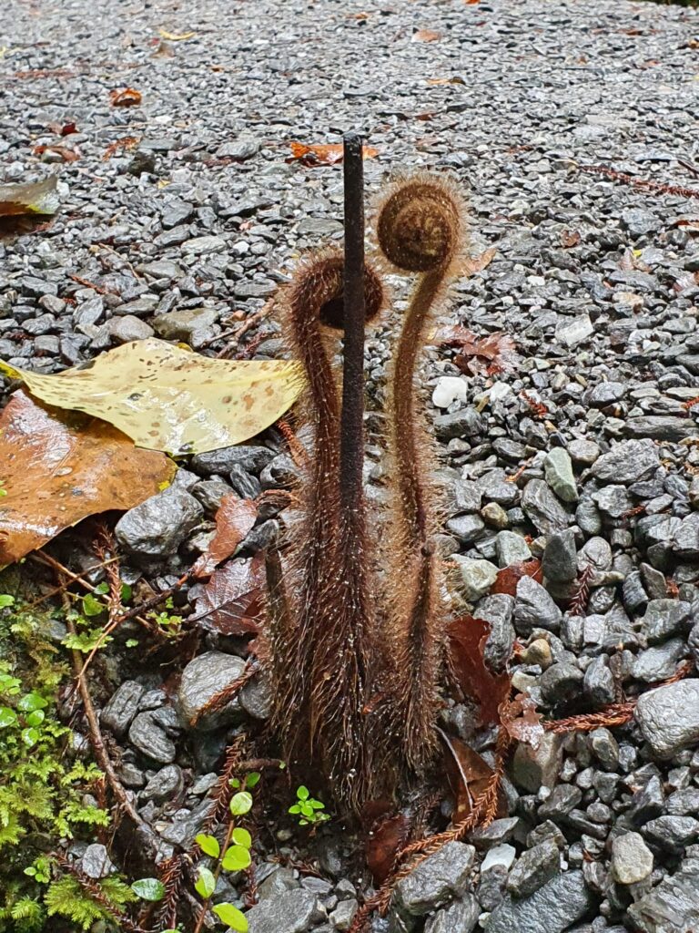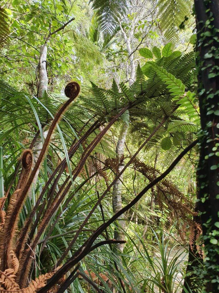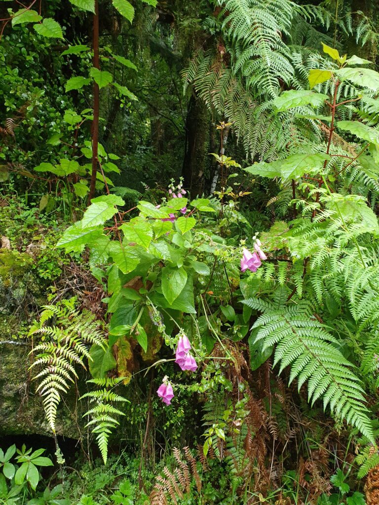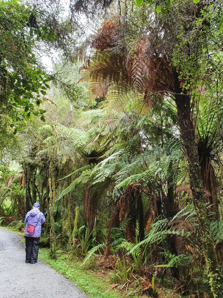 And then, some hours later, much green from the bush. Hike around the lake to the Fox Glacier viewpoint. Beautiful ferns & greetings just outside the pub – that’s the news from Dora, Anni and Judi!