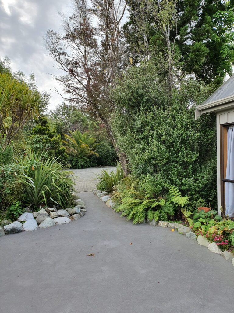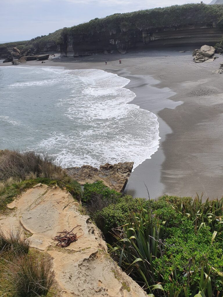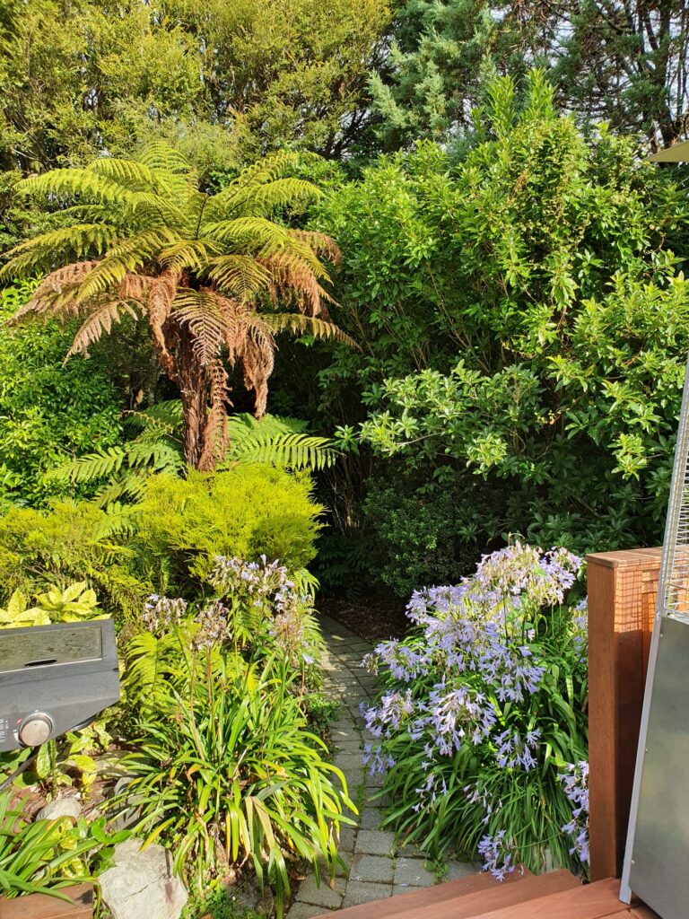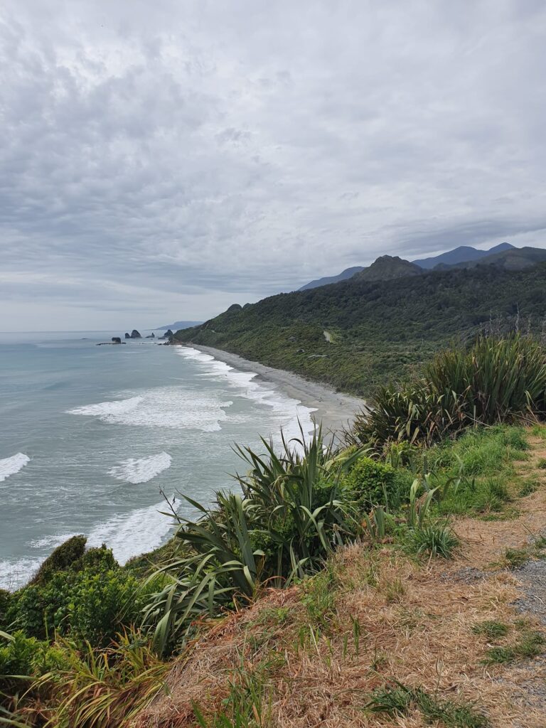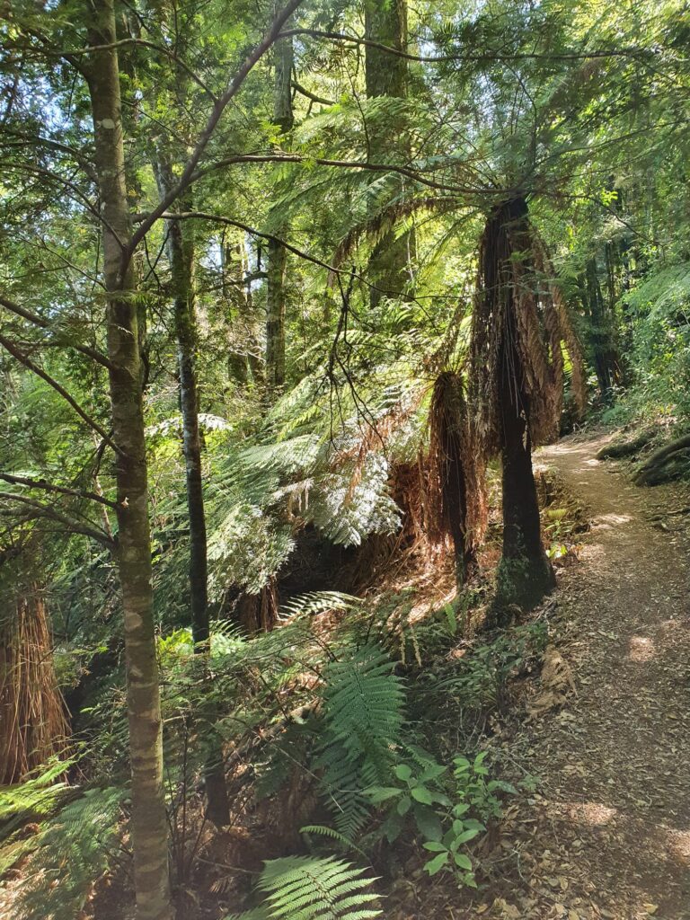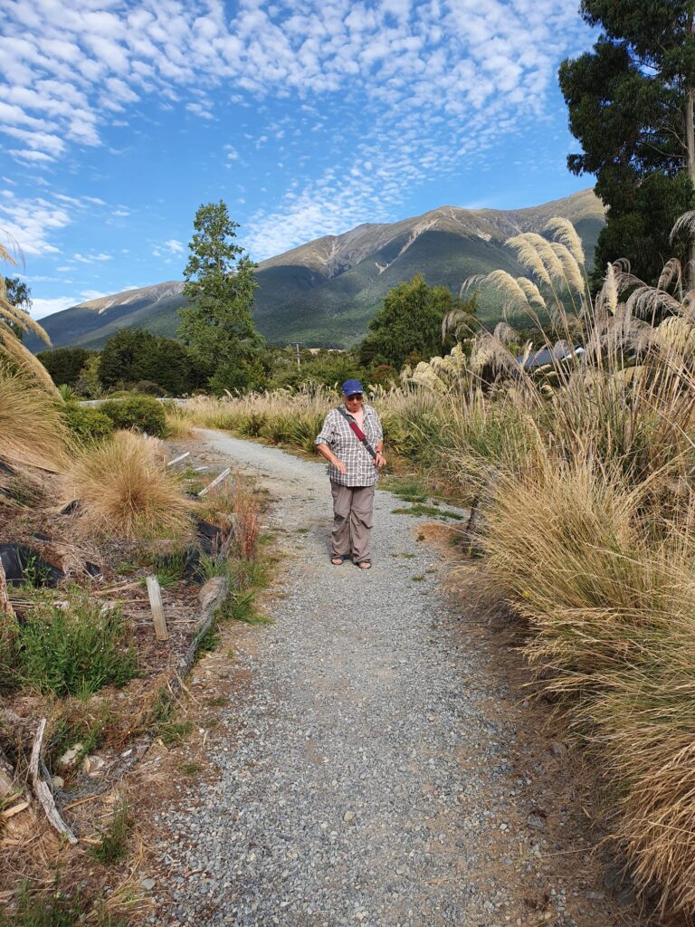 And then, some hours later, much green from the bush. Hike around the lake to the Fox Glacier viewpoint. Beautiful ferns & greetings just outside the pub – that’s the news from Dora, Anni and Judi!