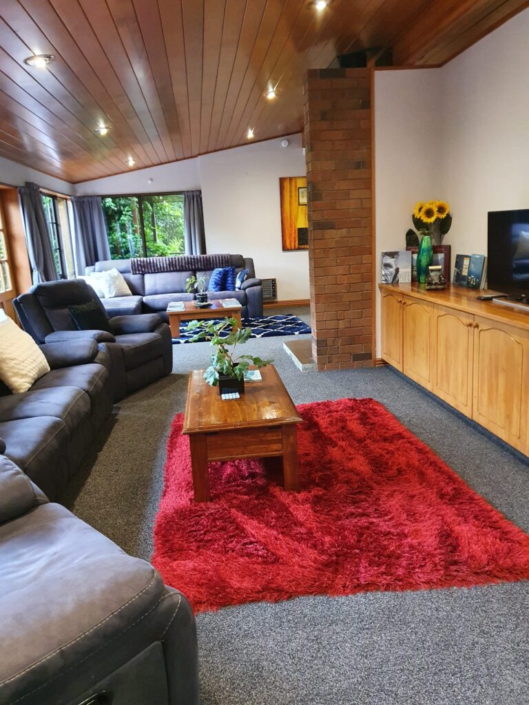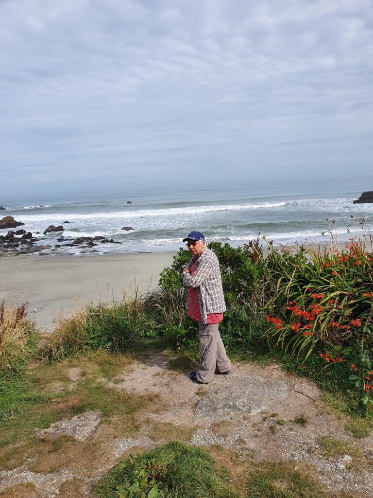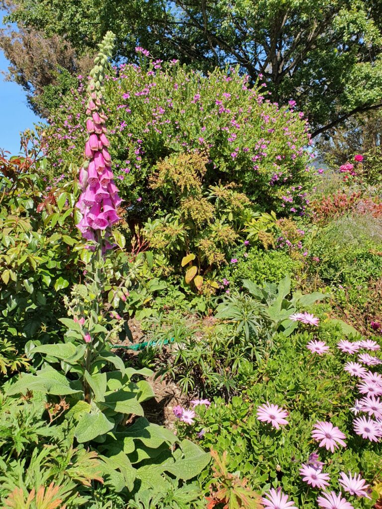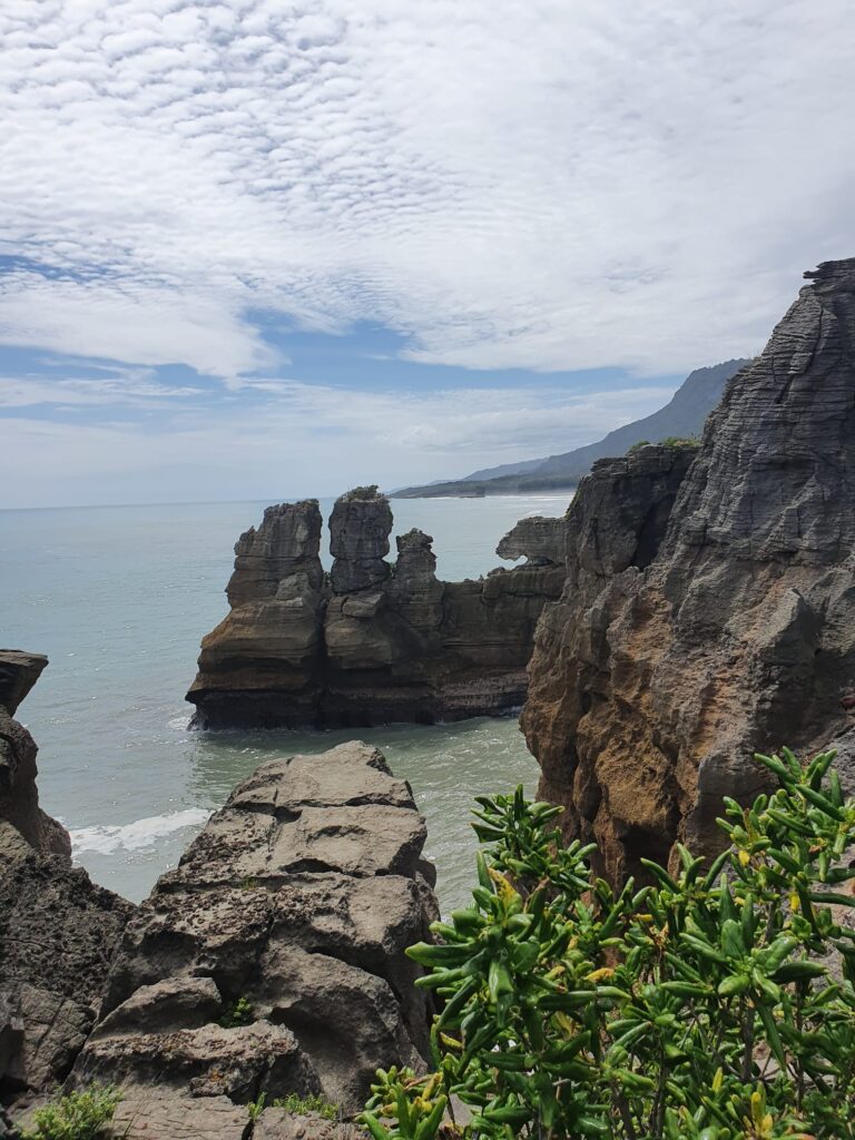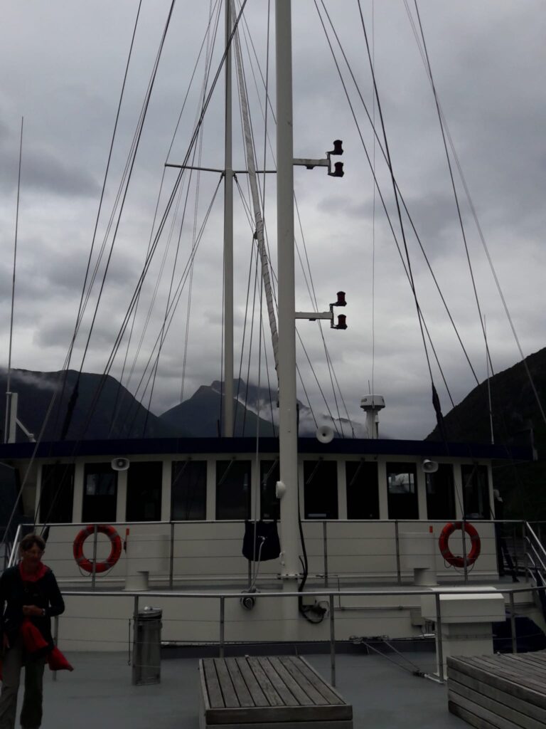 And then, some hours later, much green from the bush. Hike around the lake to the Fox Glacier viewpoint. Beautiful ferns & greetings just outside the pub – that’s the news from Dora, Anni and Judi!