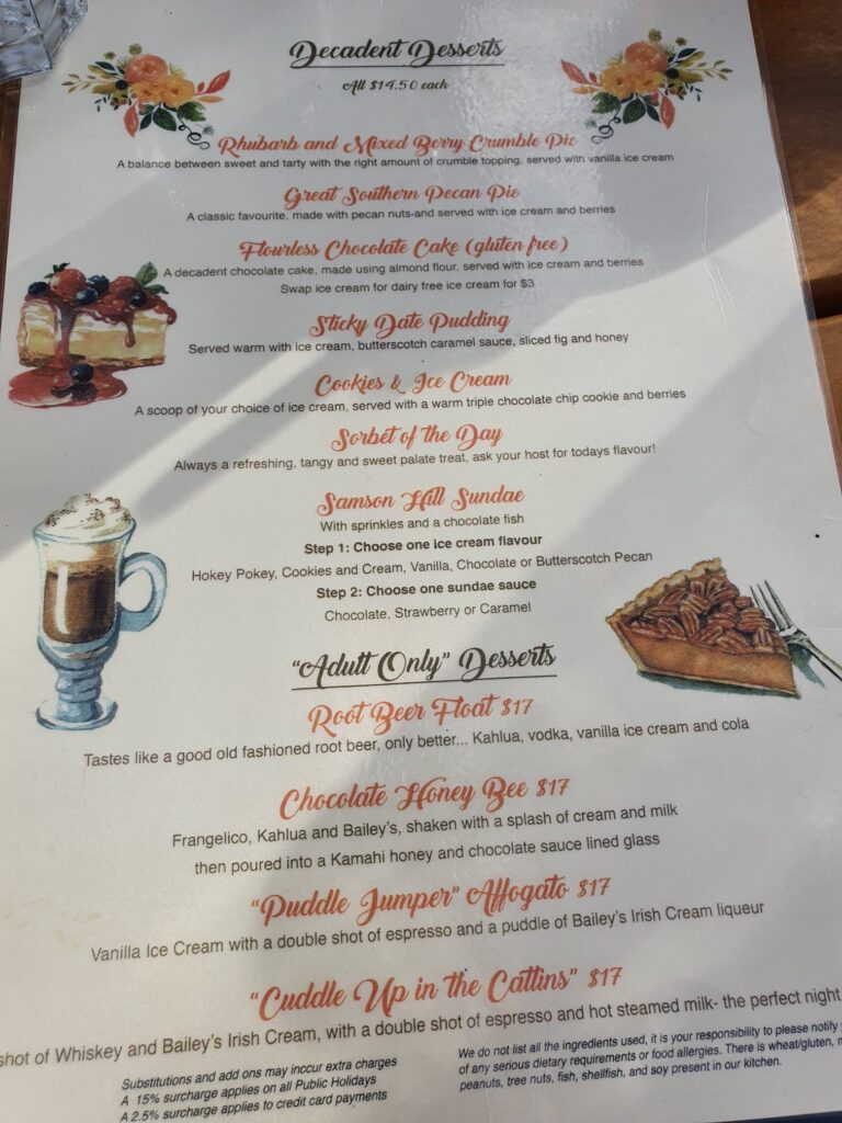 Nach meiner Beschwerde folgt noch die Desserkarte, samt Wahl…. ich packe meine Koffer und fliege nach! Adios Svizzera!