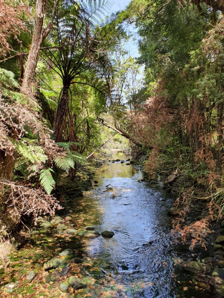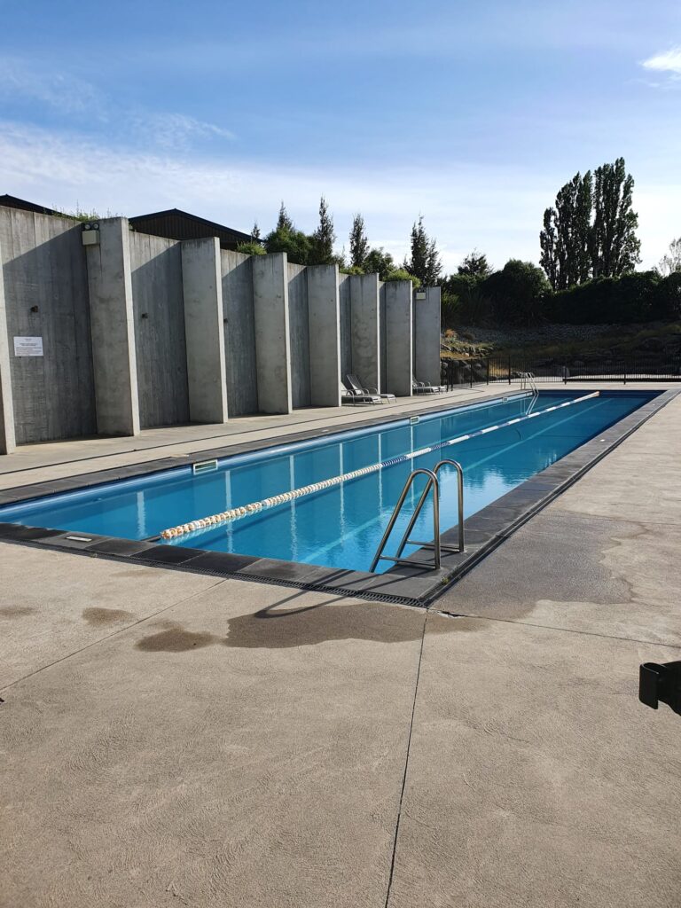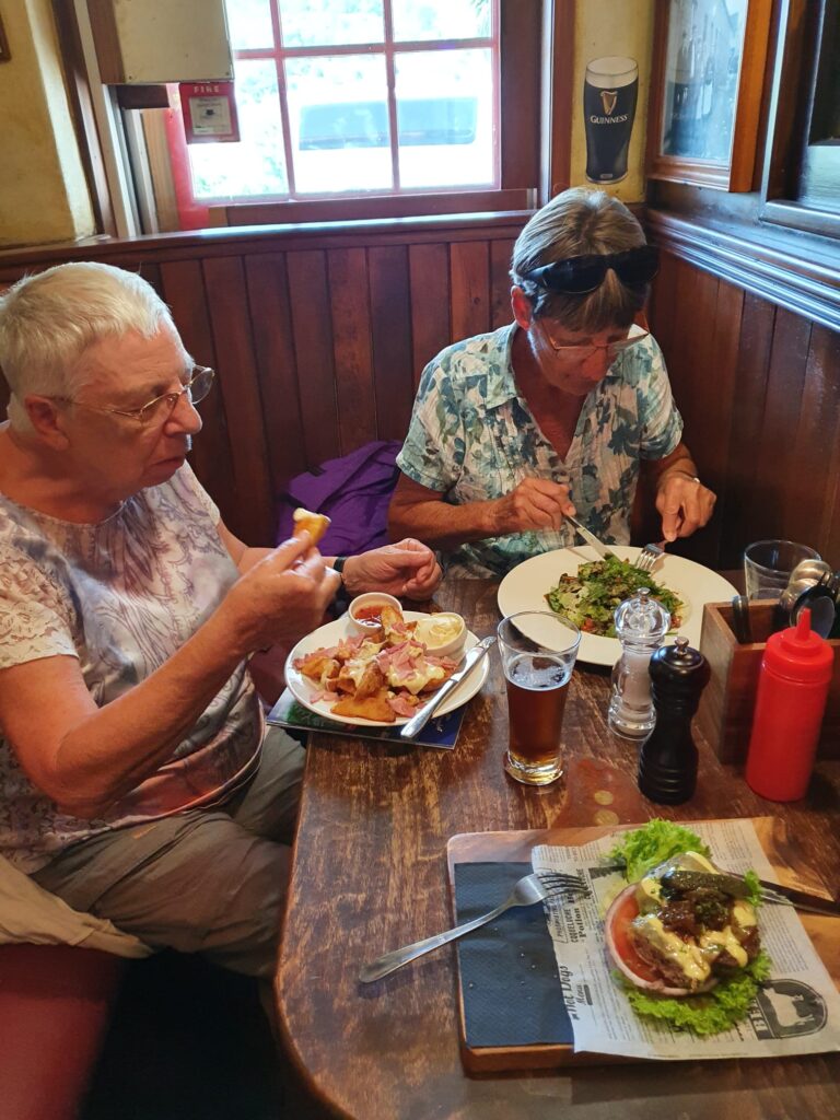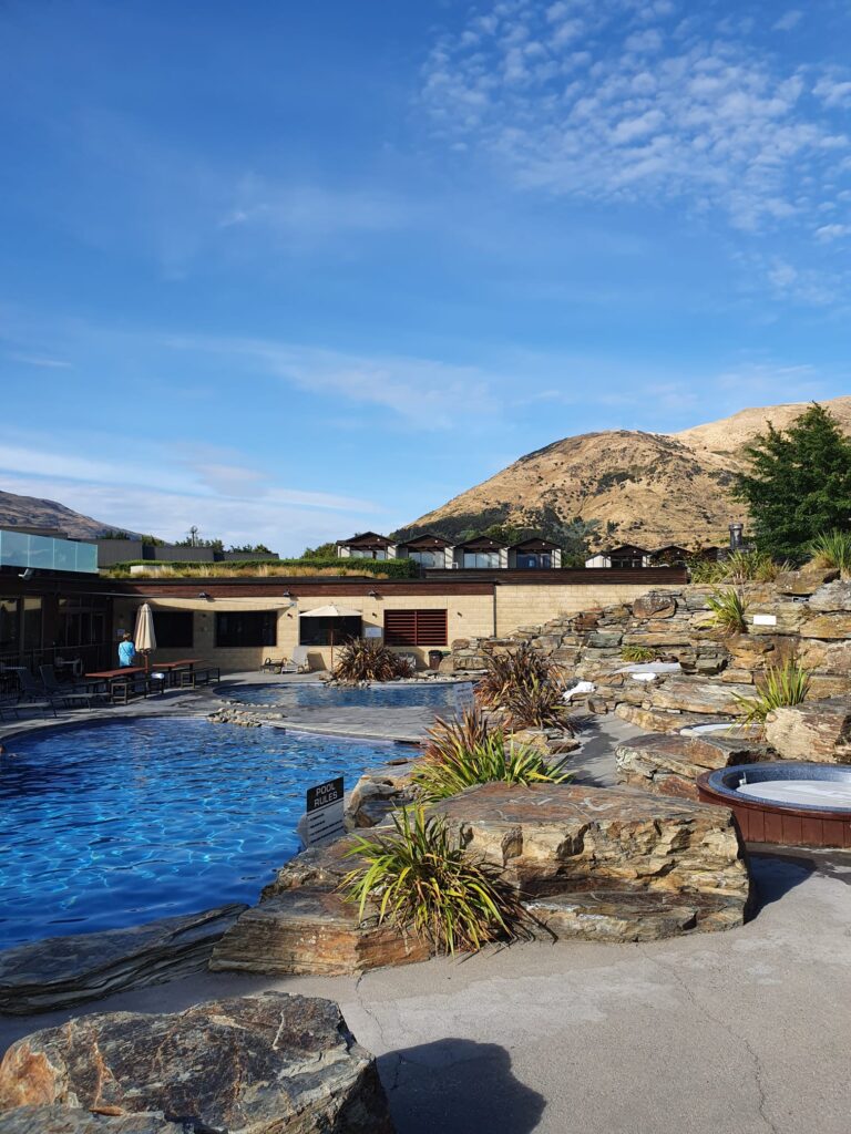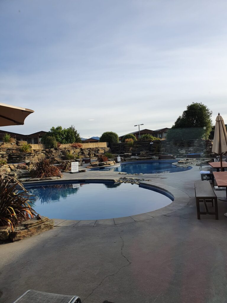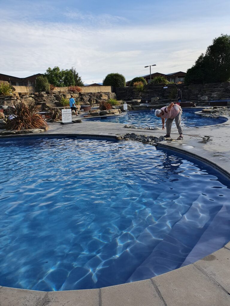 Wir kommen grad vom Mittagessen in einem nahen Pub. Nun gehen wir in den Hot Pool ins Wasser uns aufweichen. Endlich etwas Regen. Es ist grauenhaft diese Dürre zu sehen.