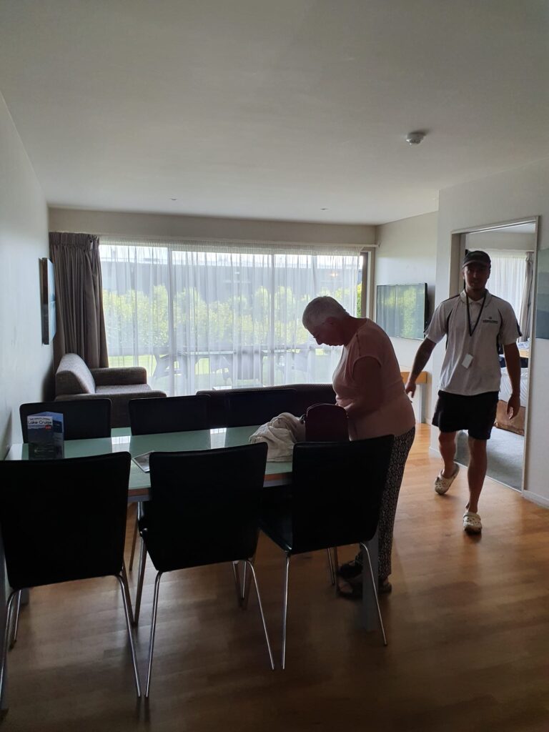 Die ausgewechselte Loge hat es in sich… Tresor chic, wie Dora schreibt. Am Mittwoch um 2030h hat Judi noch eine neue Bleibe gefunden. Luxus pur! Williams Hotel in Wanaka!