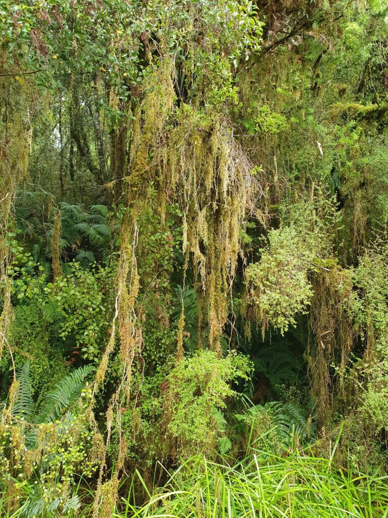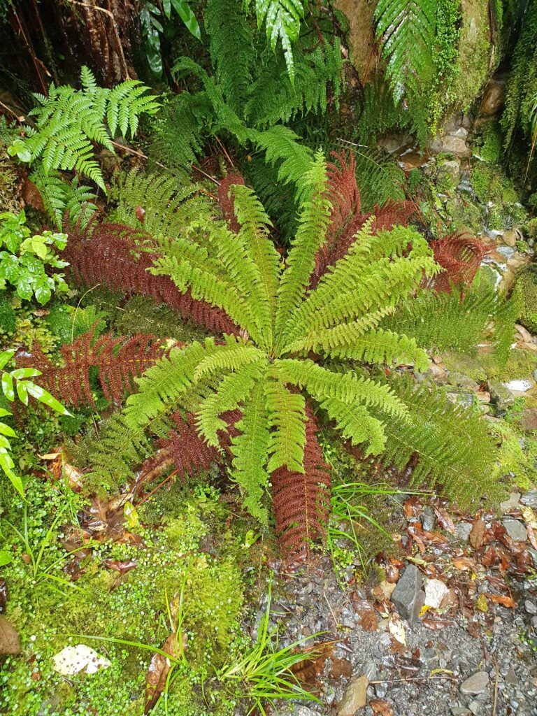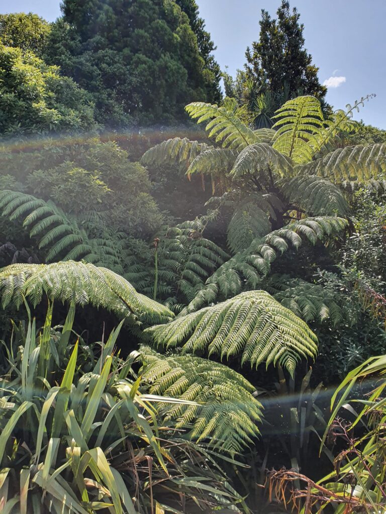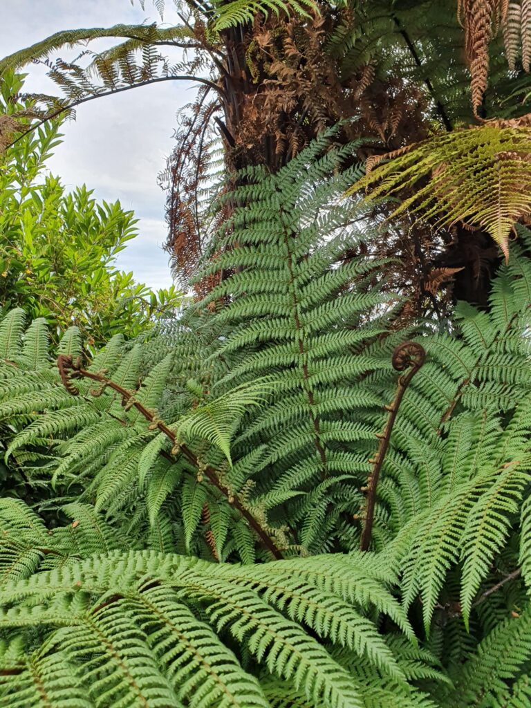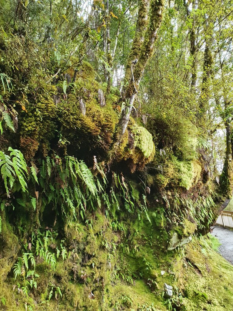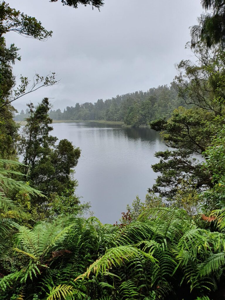 Und dann, ein paar Stunden später, viel grün aus dem Busch. Wanderung um den See zum Fox Glacier Aussichtspunkt. Wunderschöne Farne & herzliche Grüsse kurz vorm Pub – das die News von Dora, Anni und Judi!