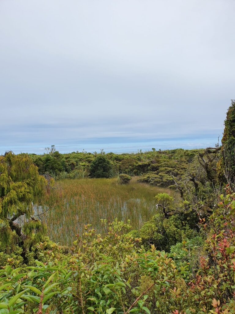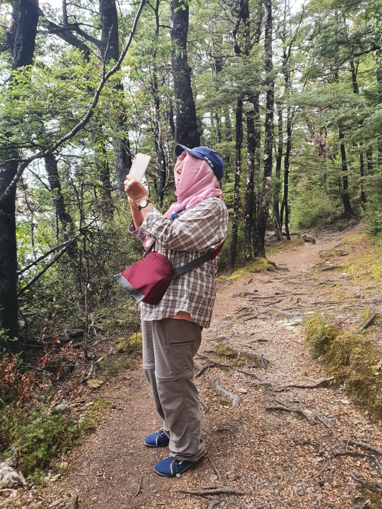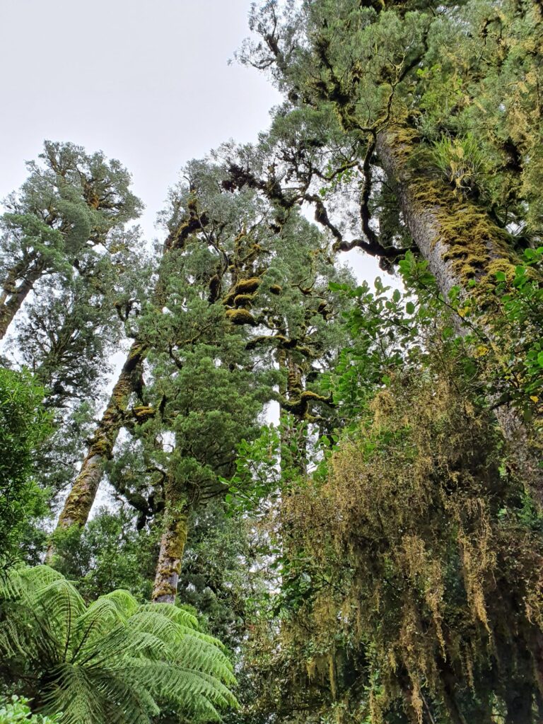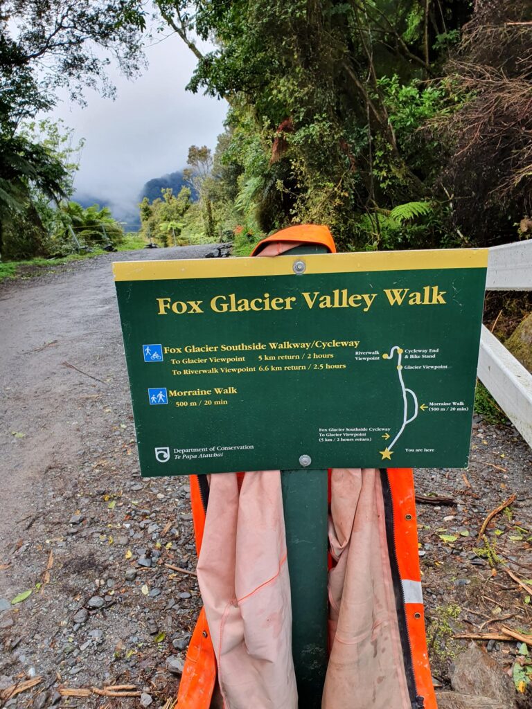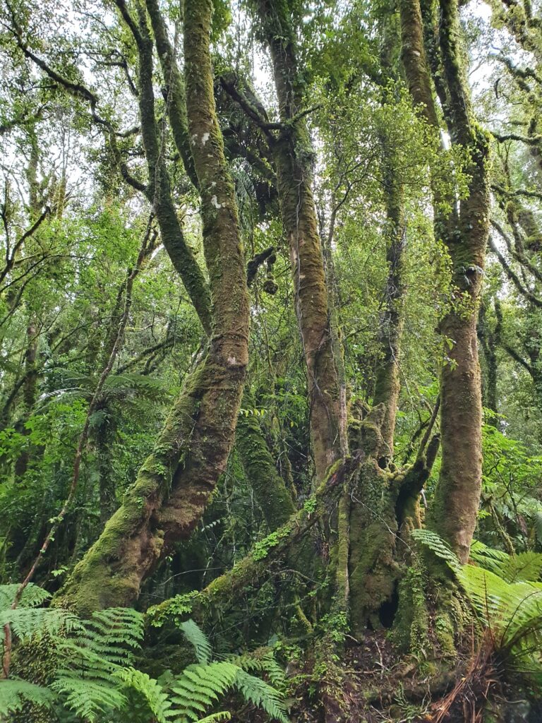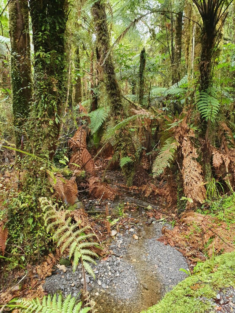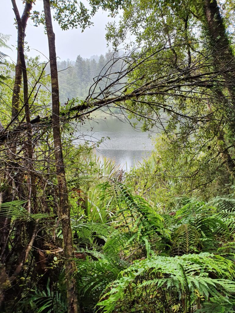 Und dann, ein paar Stunden später, viel grün aus dem Busch. Wanderung um den See zum Fox Glacier Aussichtspunkt. Wunderschöne Farne & herzliche Grüsse kurz vorm Pub – das die News von Dora, Anni und Judi!