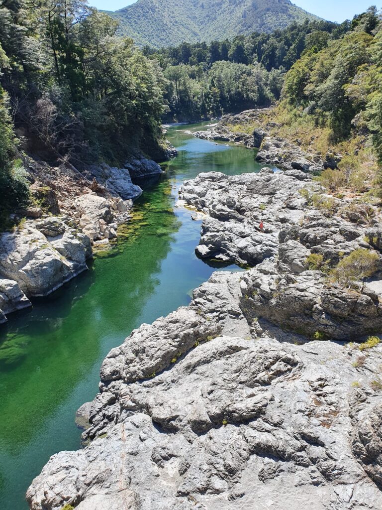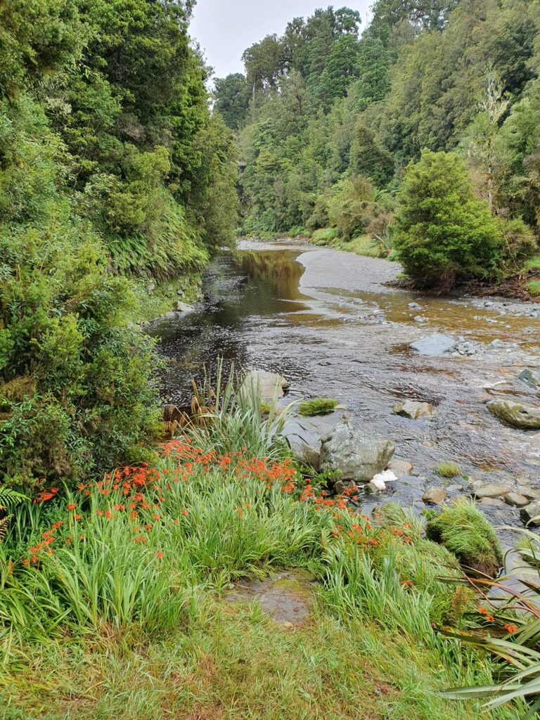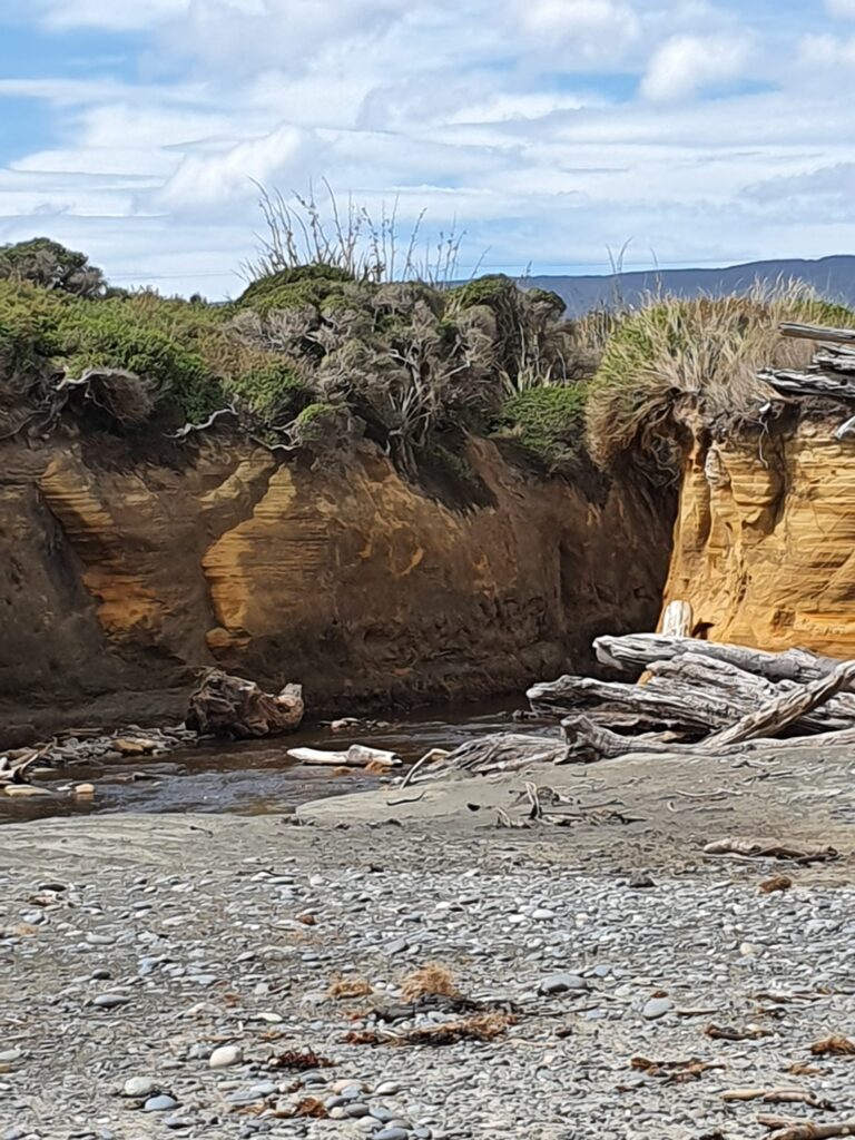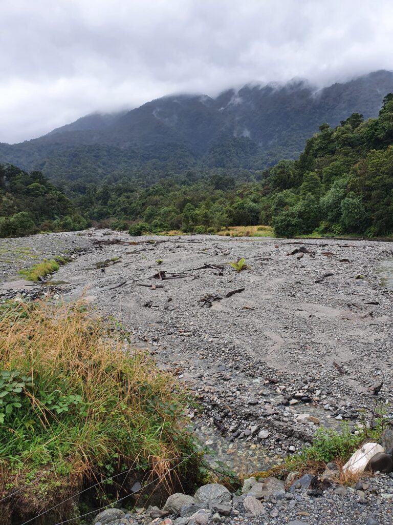 We changed coast and weather. There is a lot of damage to be seen – the mountain stream has overflowed its banks.