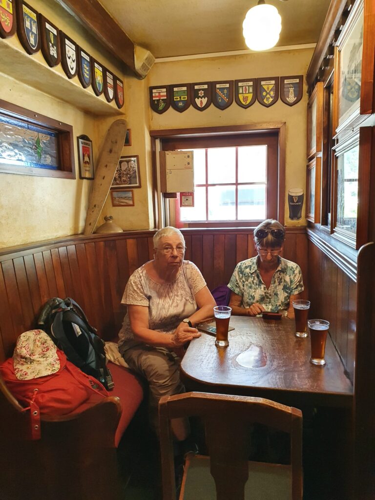 …wohl aber vom Irish Pub danach. Sie trinken Bier und warten aufs Essen.