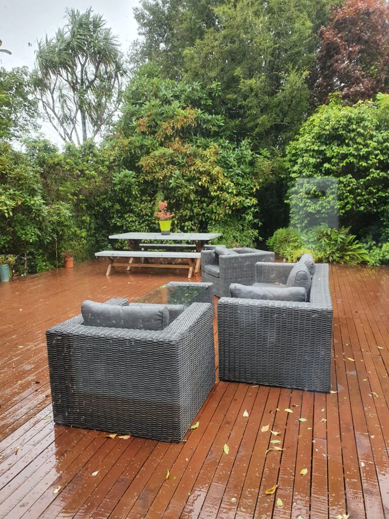 We just came from lunch in a nearby pub. Now we go into the hot pool to soak up the water. Finally some rain. It is horrible to see this drought.