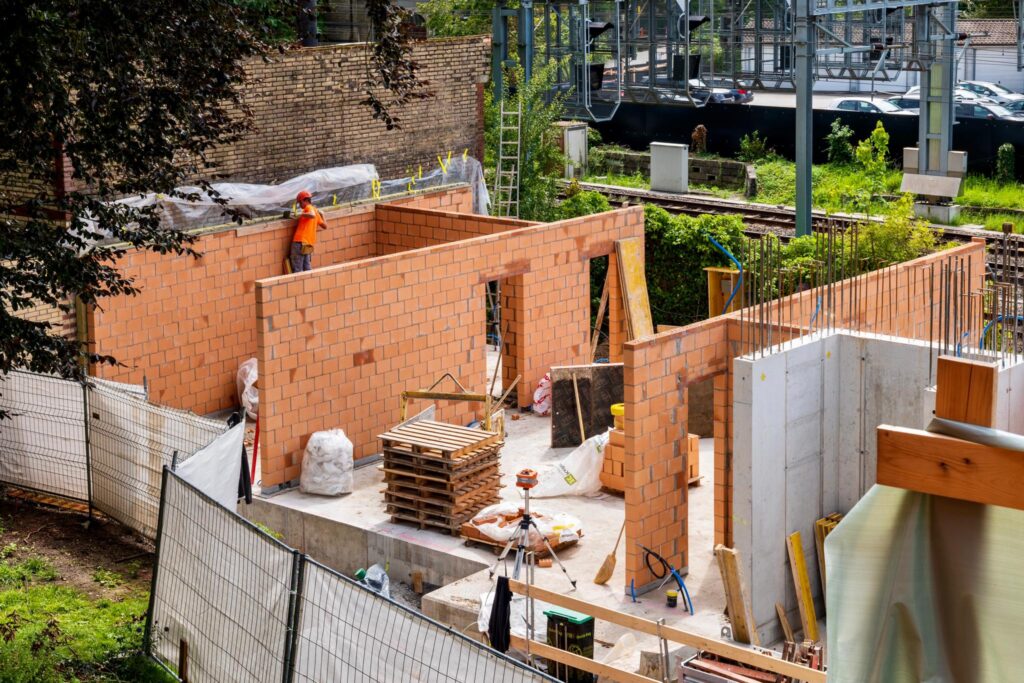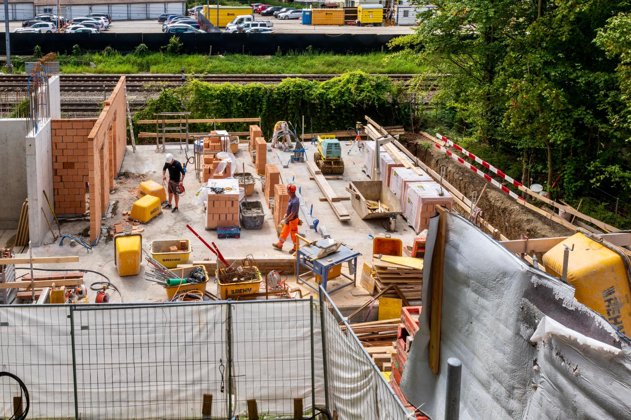 Jetzt nimmt das Ganze plötzlich Formen an! aus zweidimensionalen Plänen werden Räume, die Höhe wird ersichtlich und wir richten mental ein. Und stellen fest, dass der alte Schrank vermutlich der verschobenen Türe zum Opfer fallen muss. Nächste Woche folgt die Aussenfassade – wir sind gespannt, ob am Dienstag «nur» die Fassade des Erdgeschosses geliefert wird, oder ob jetzt grad die ganze Fassade gestellt wird. Das Baugerüst tendiert zu Version 2. Spannende ist’s und spannend bleibt’s!
