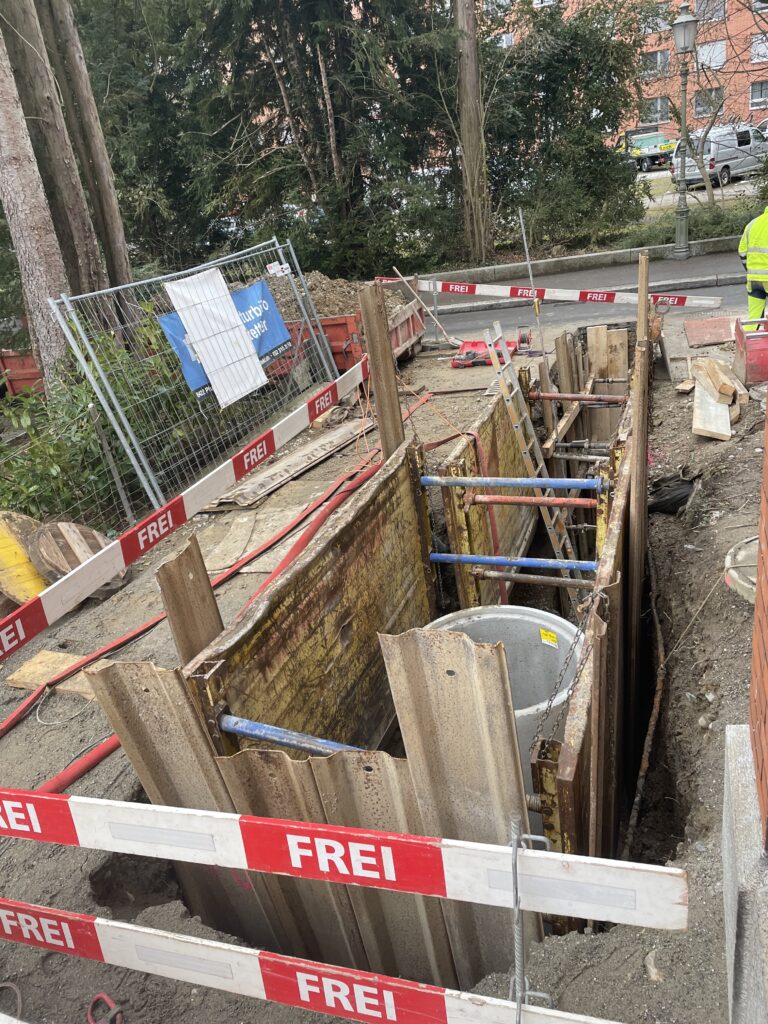 Die Baustelle schläft. Ruhig und tief! und offensichtlich gut. So alle paar Tage huscht mal einer durch die Räume, werkelt etwas vor sich hin… immerhin haben wir eine Badewanne und einen WC-Drücker. Zwar noch kein Klo, aber bitte, man muss ja Prioritäten setzen. Der Baucontainer kommt weg und die Stadt öffnet und schliesst in gemütlichem Tempo Gräben für Abwasser, Elektro, Fernwärme. Einer nach dem anderen. In aller Gemütsruhe.